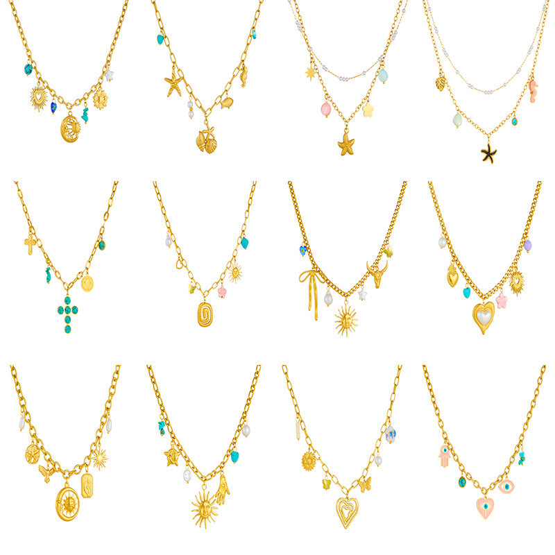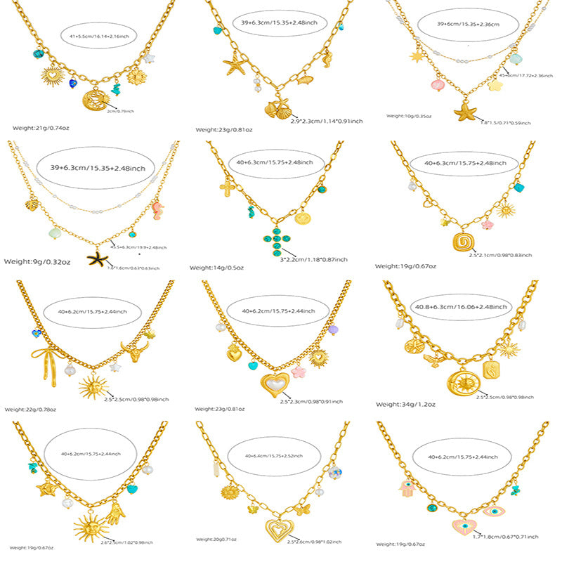 Fashion Spiral Oval Heart-Shaped Large Pendant Sweater Chain Crystal Butterfly Flower Multi-Element Accessories Necklace