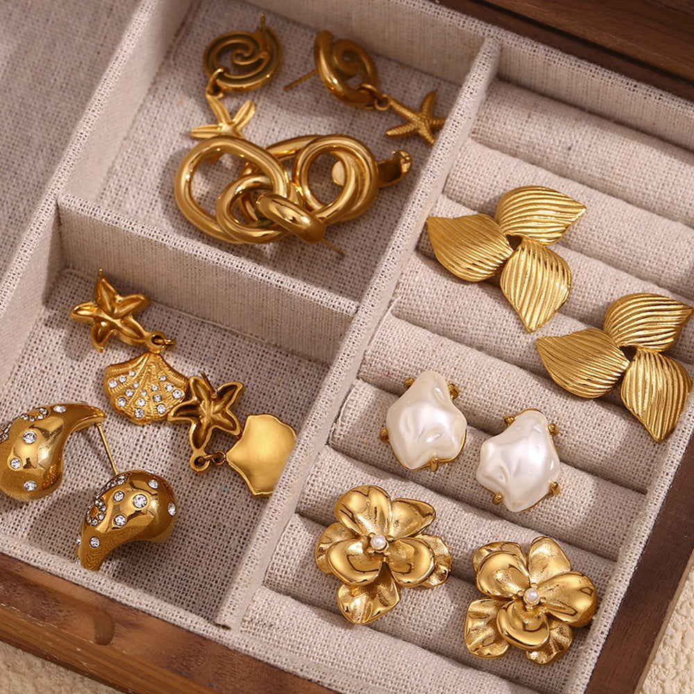 | Color | O-shaped winding geometric earrings – gold, Luxury Baroque Pearl Earrings – Gold, Luxury Baroque Pearl Earrings – Steel, Double layered petal embellished pearl earrings – gold, Starfish Shell Dot Diamond Splicing Earrings – Gold, Sweet Donut Starfish Splicing Earrings – Gold, Boomerang earrings – gold, Boomerang earrings – steel color, Luxury Water Drop Sticky Diamond Butterfly Earrings – Gold White Diamond, Luxury Water Drop Sticky Diamond Butterfly Earrings – Steel – White Diamond |