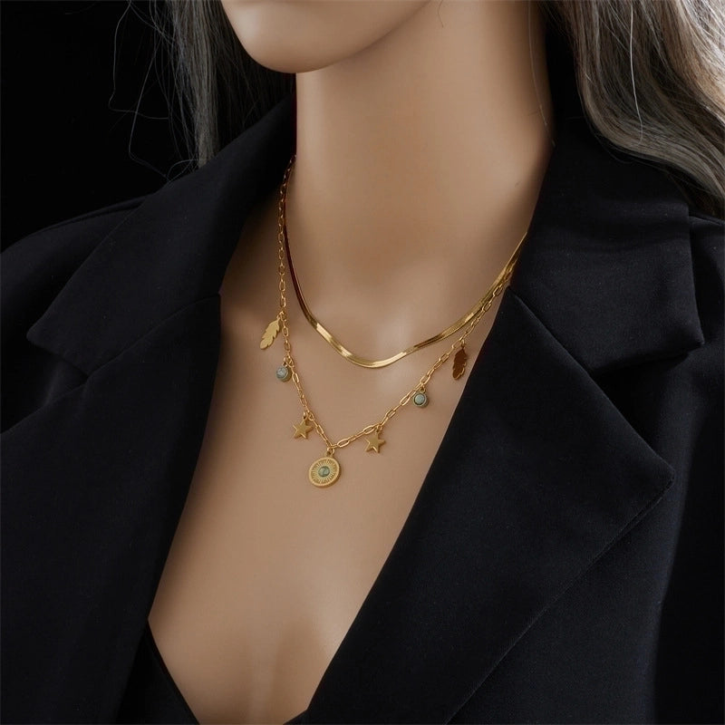 Fashion Sun Eye Titanium Steel Plating Inlay Turquoise Layered Necklaces