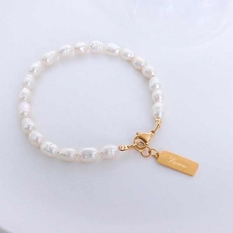 Fashion Temperament Titanium Steel 18k Gold Plated Freshwater Pearl Bracelet