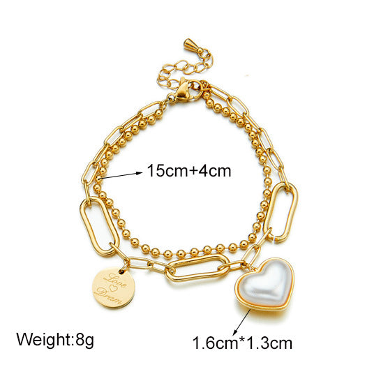 Fashion Women Heart Chain Titanium Steel Electroplating Bracelets