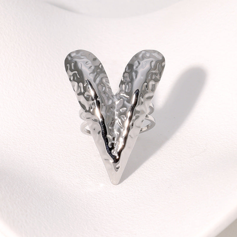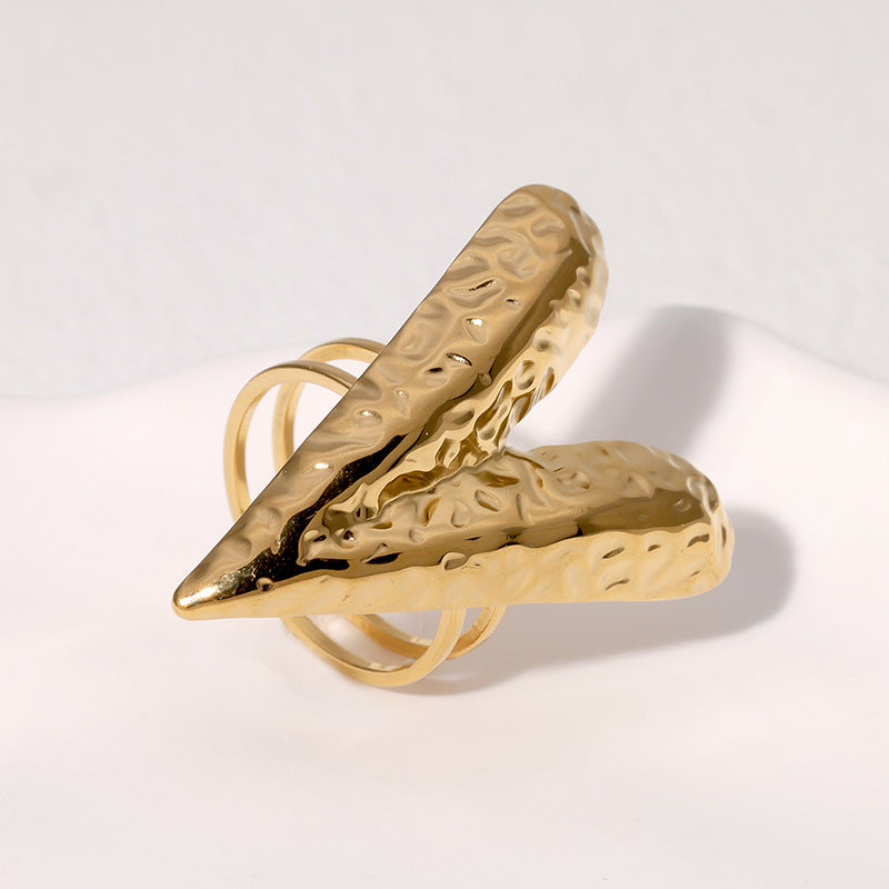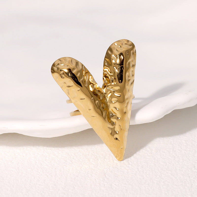 Fashionable And Exaggerated Personality Retro Love-Shaped Ring French Gold-Plated Stainless Steel Ring For Women