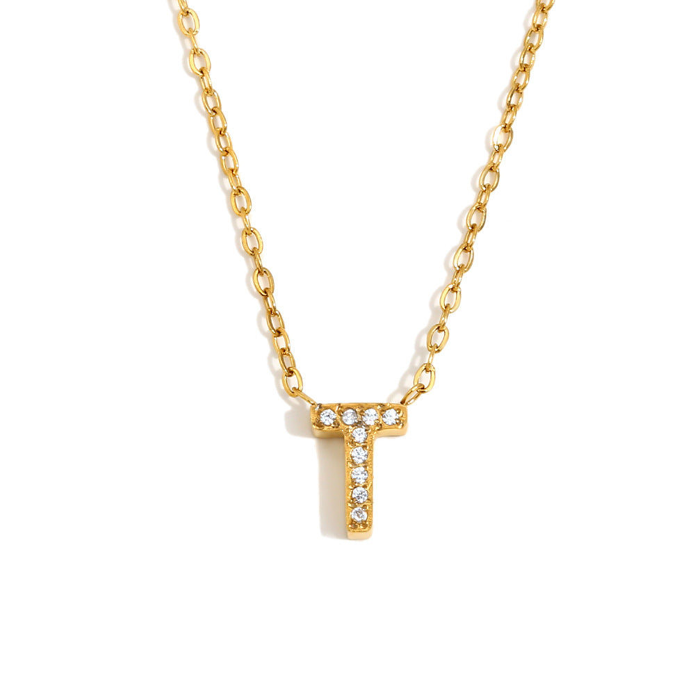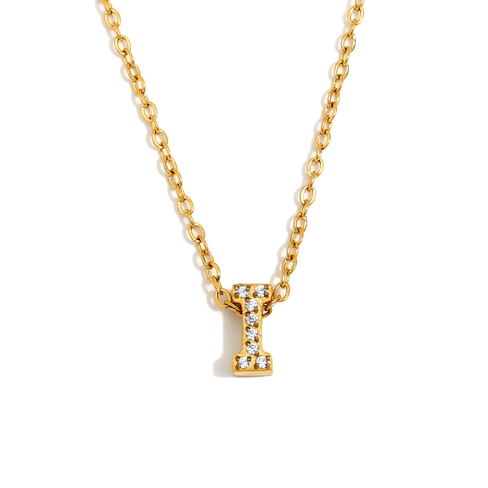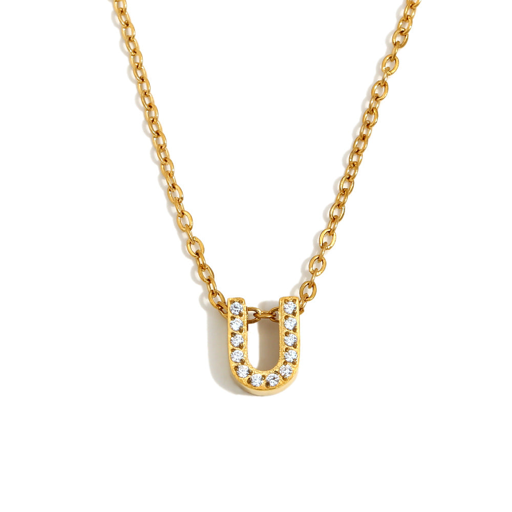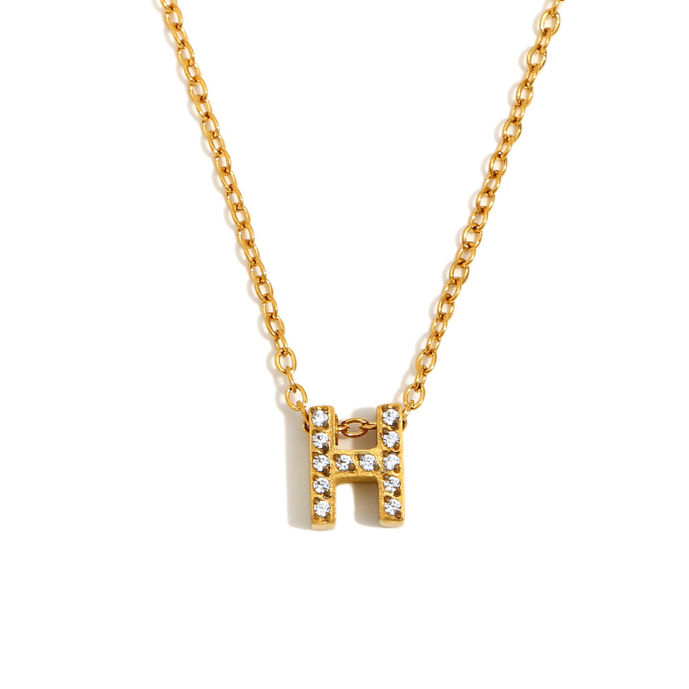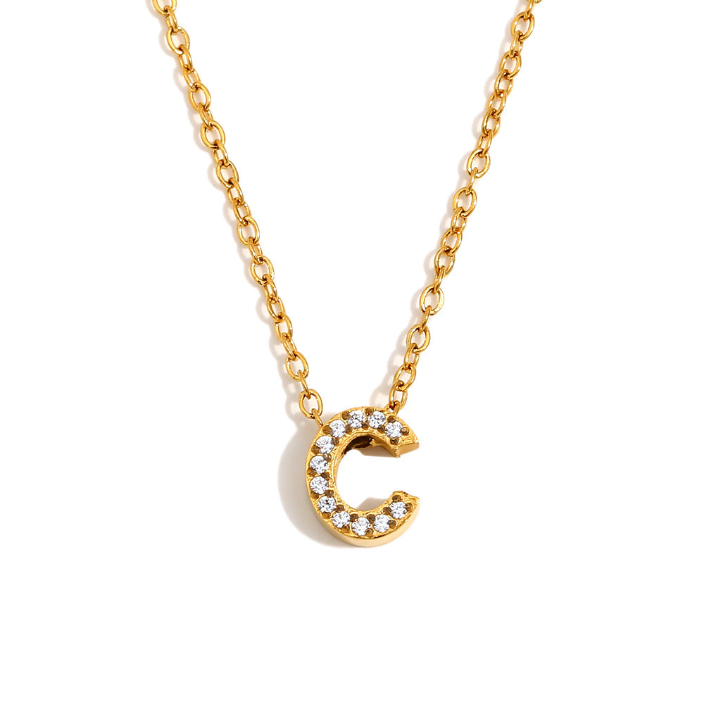 Fashionable And Simple 26 English Letter Pendant Stainless Steel Plated 18K Gold Diamond Small Letter Necklace For Women