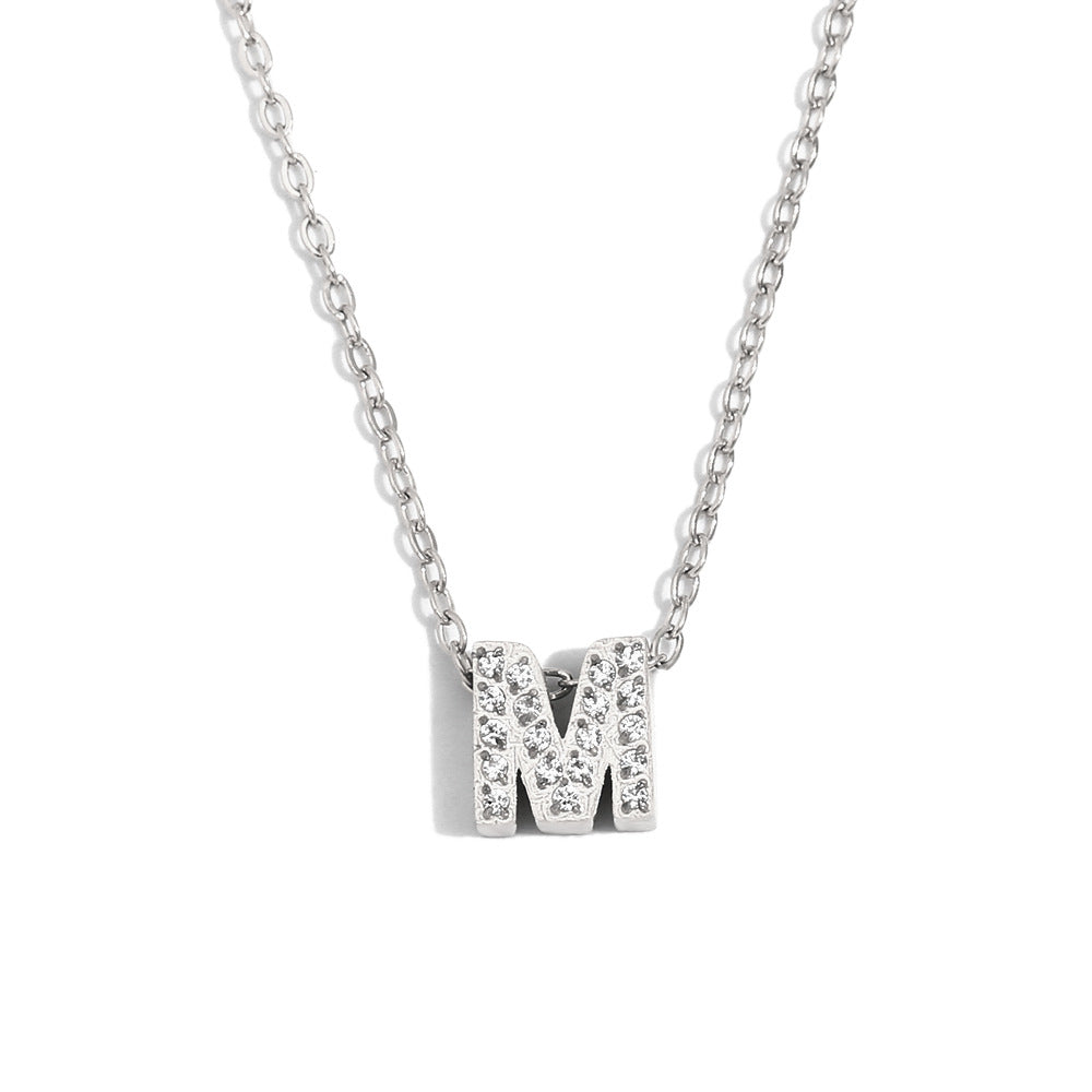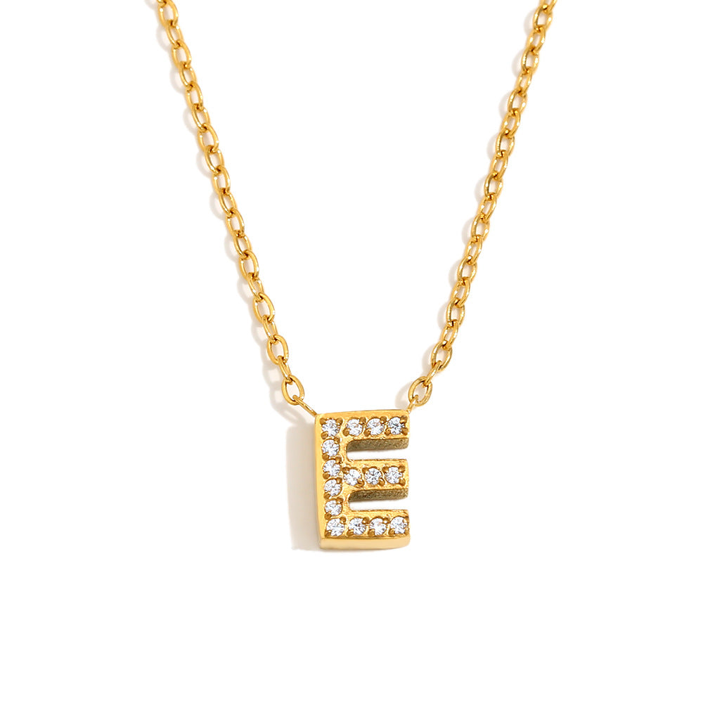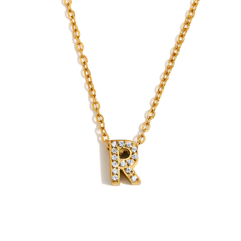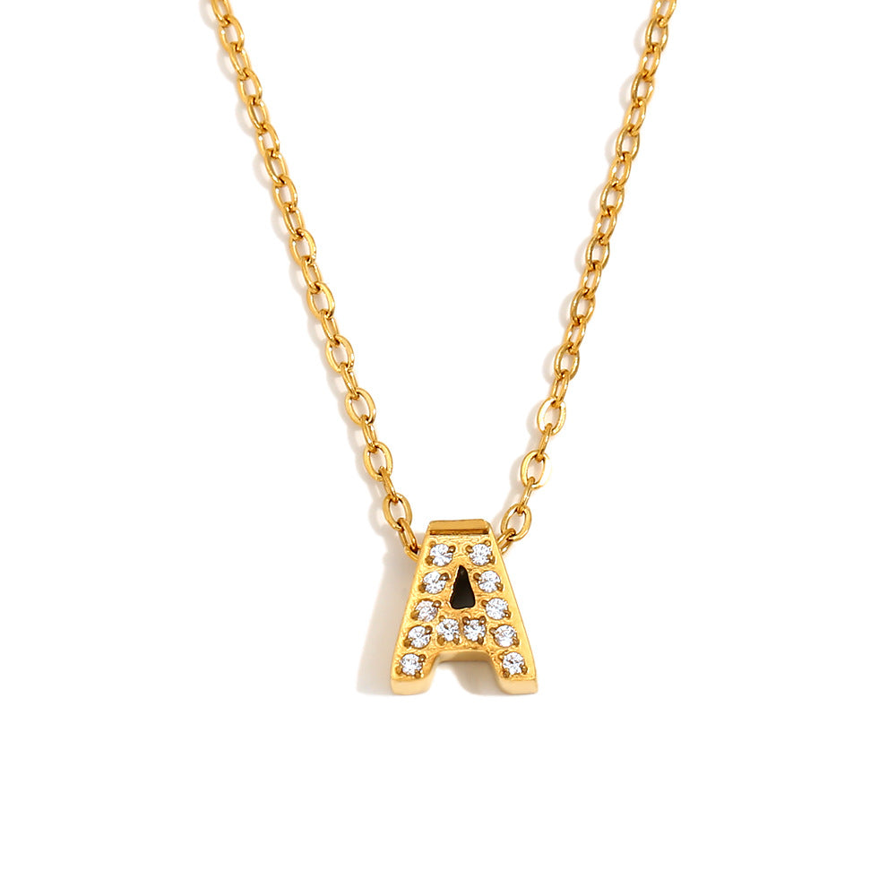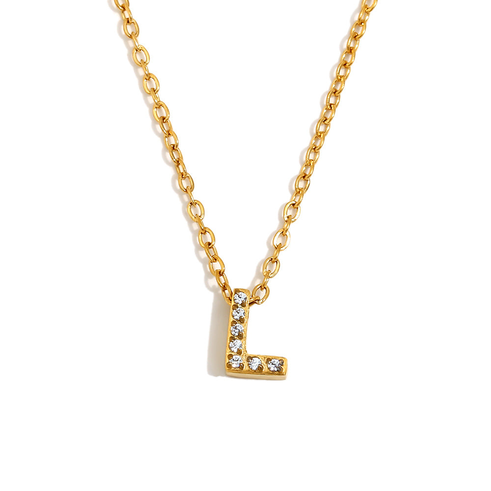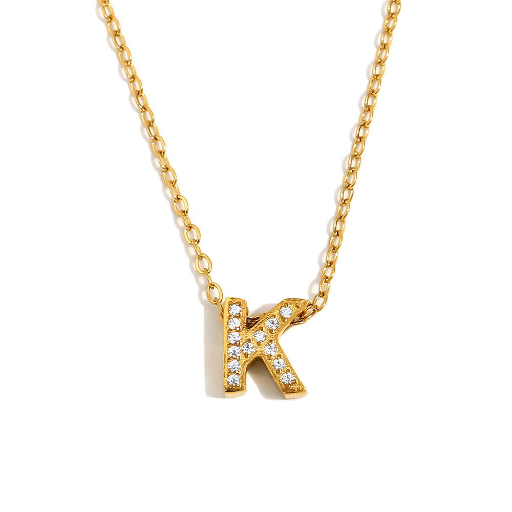 Fashionable And Simple 26 English Letter Pendant Stainless Steel Plated 18K Gold Diamond Small Letter Necklace For Women