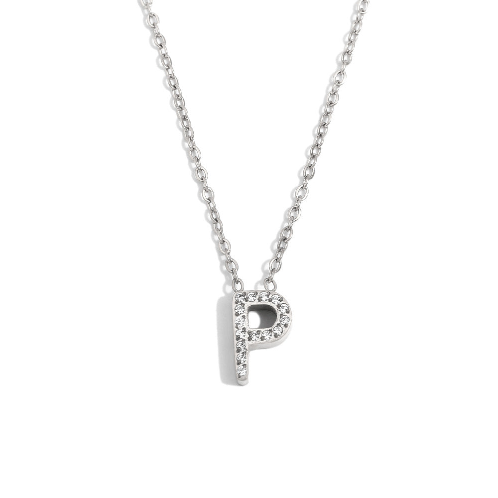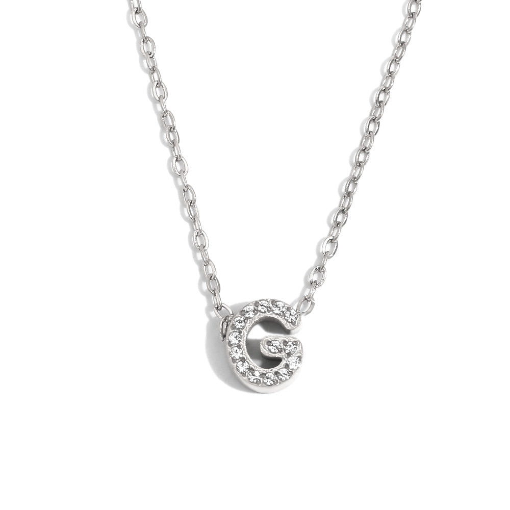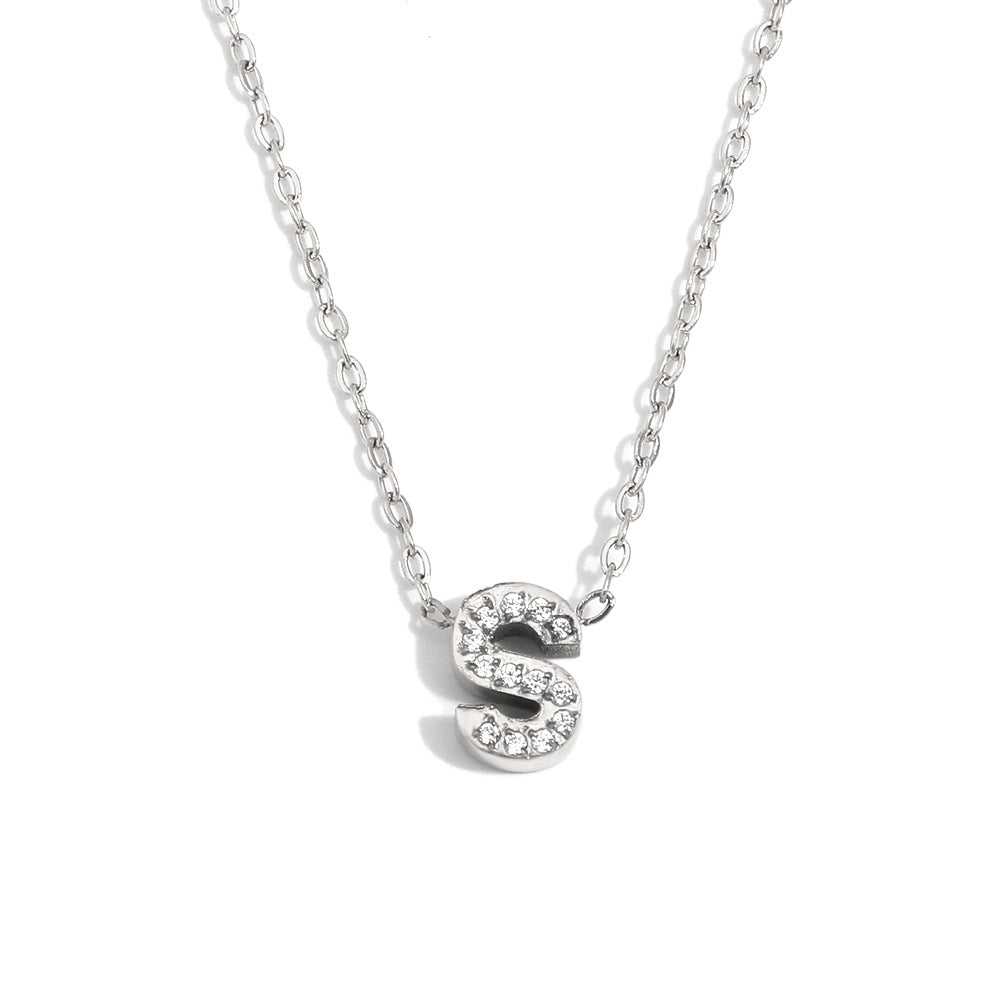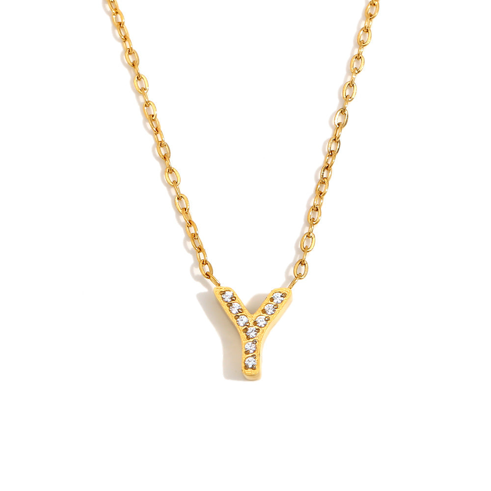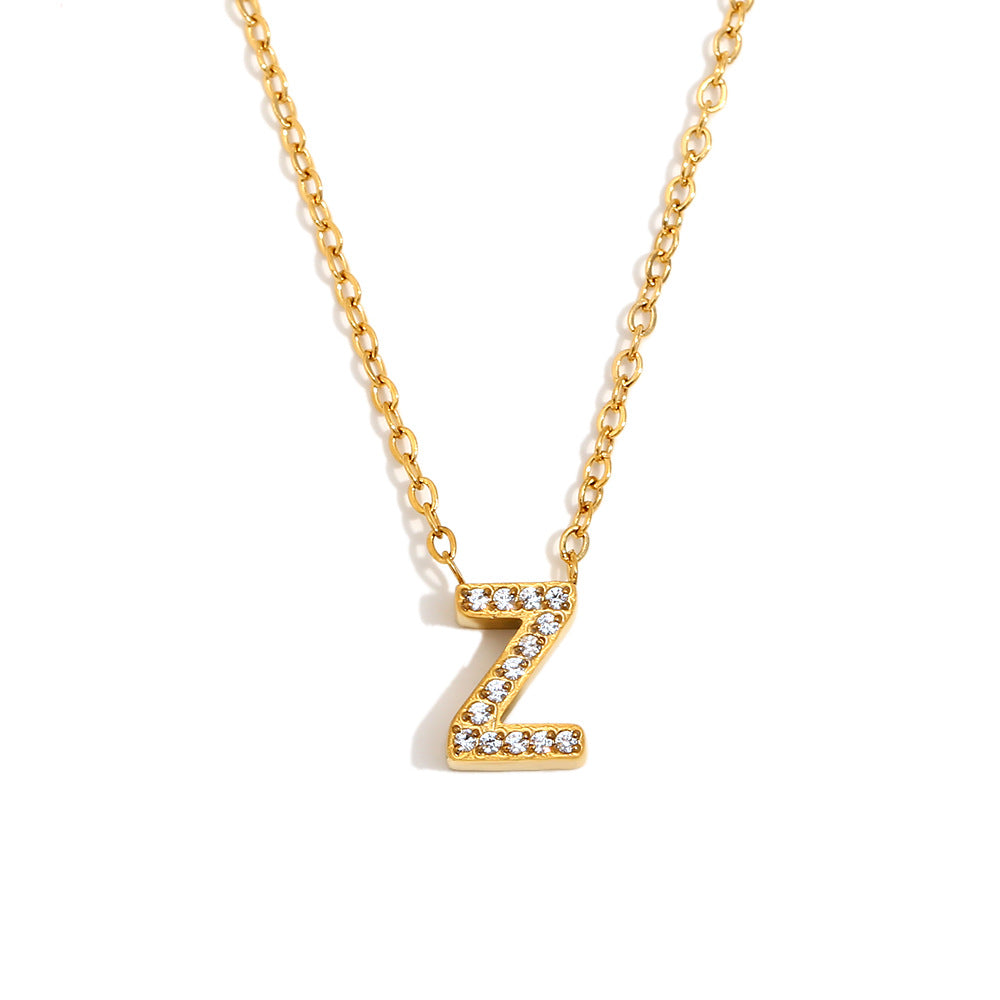 Fashionable And Simple 26 English Letter Pendant Stainless Steel Plated 18K Gold Diamond Small Letter Necklace For Women