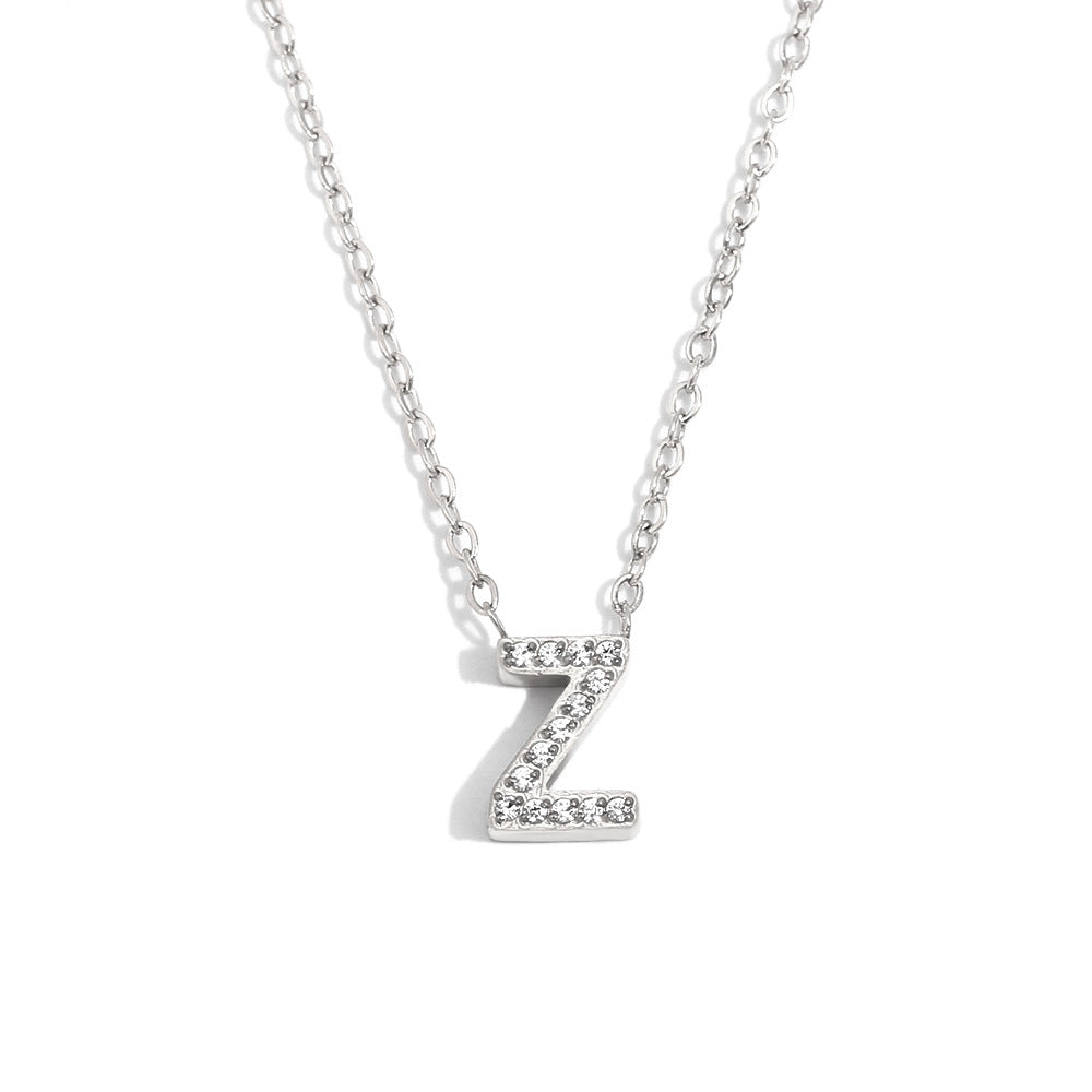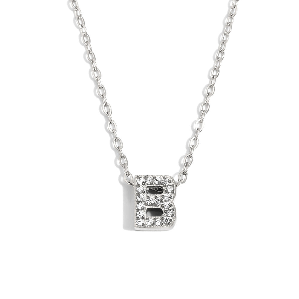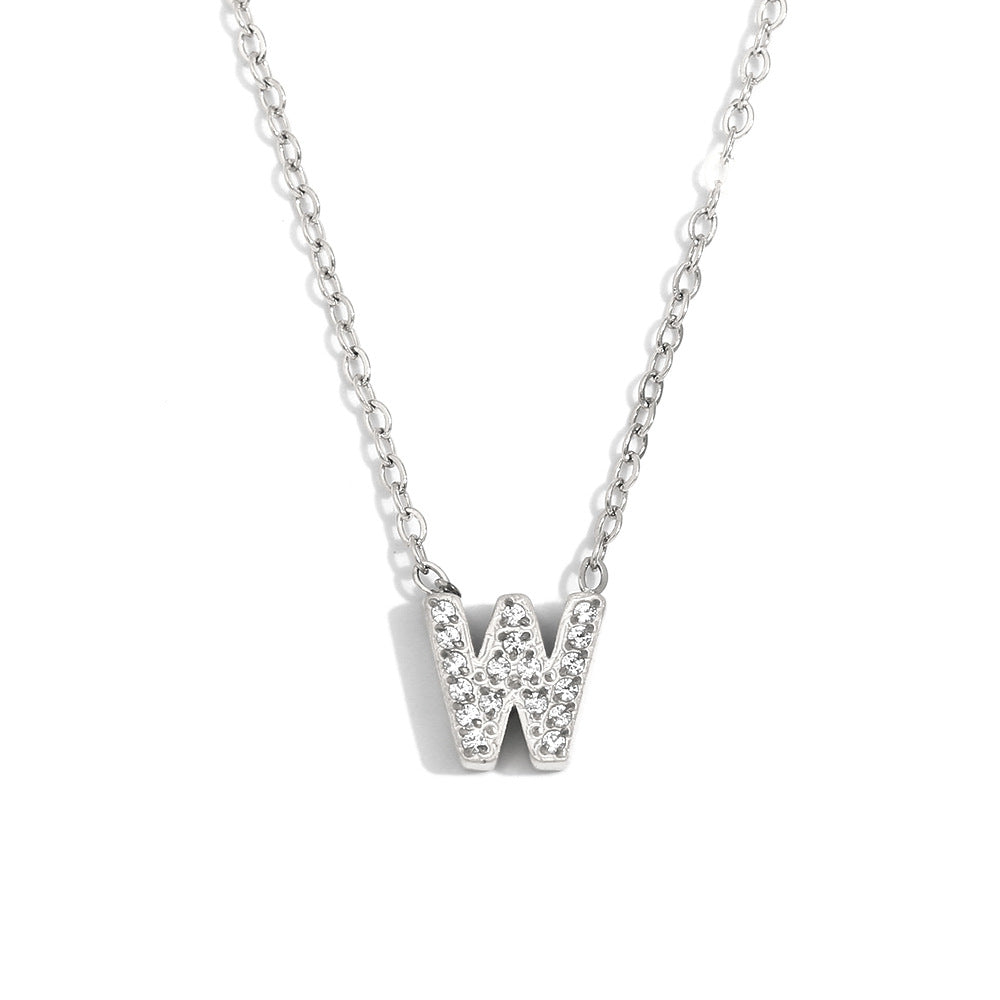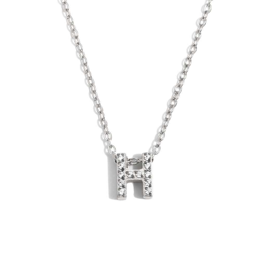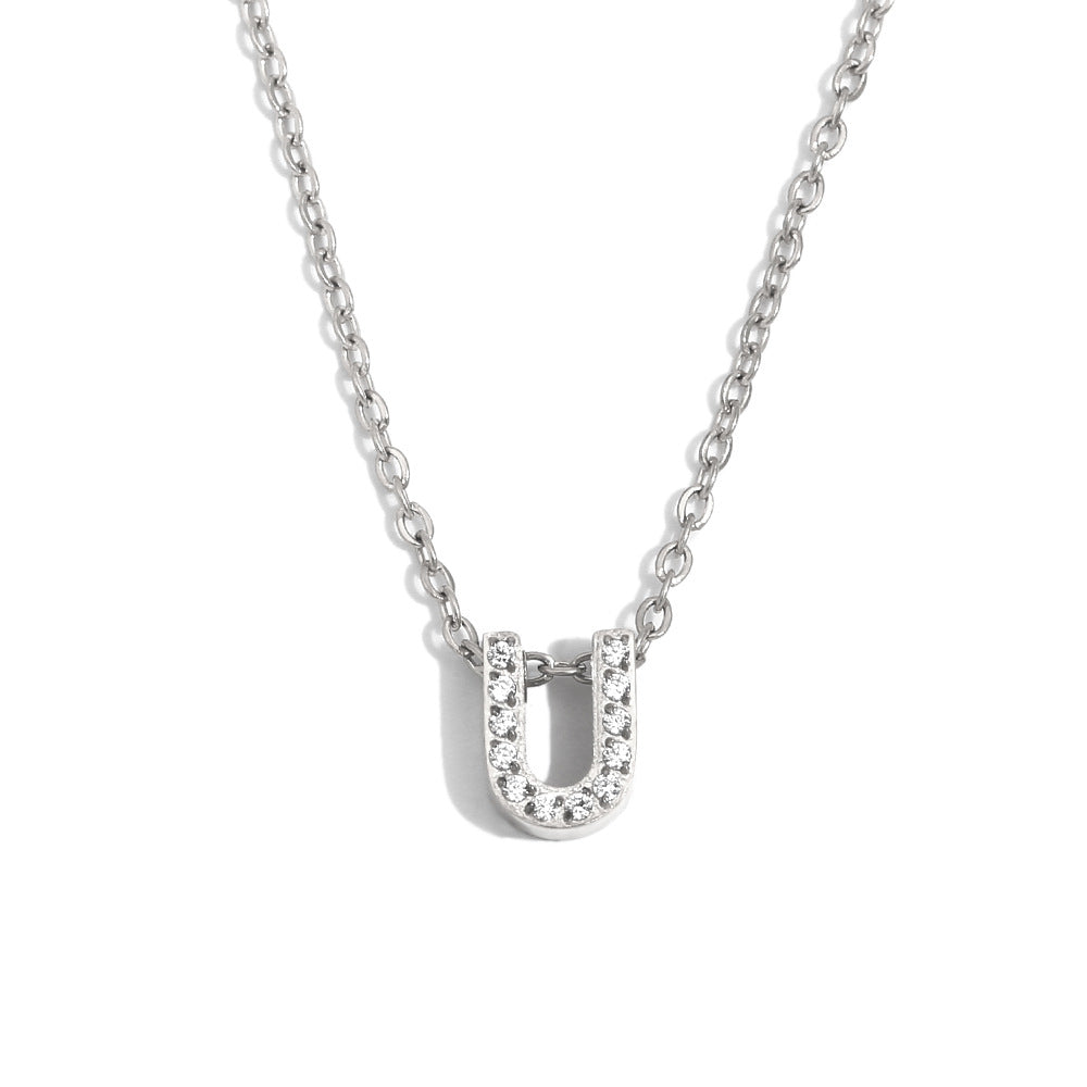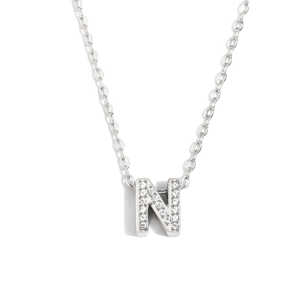 Fashionable And Simple 26 English Letter Pendant Stainless Steel Plated 18K Gold Diamond Small Letter Necklace For Women