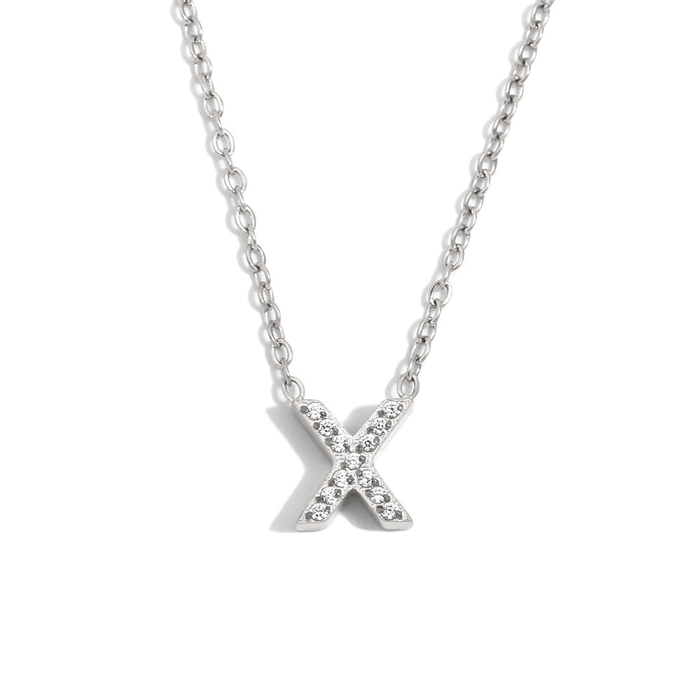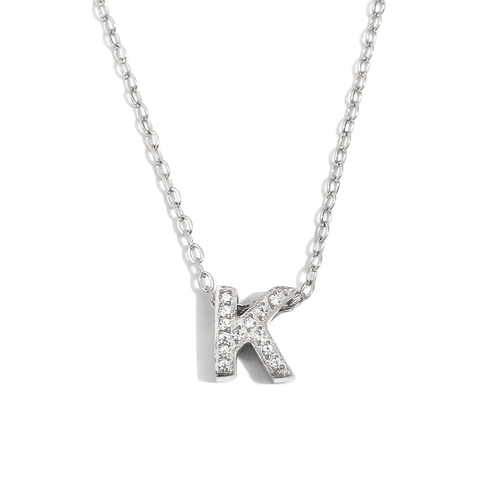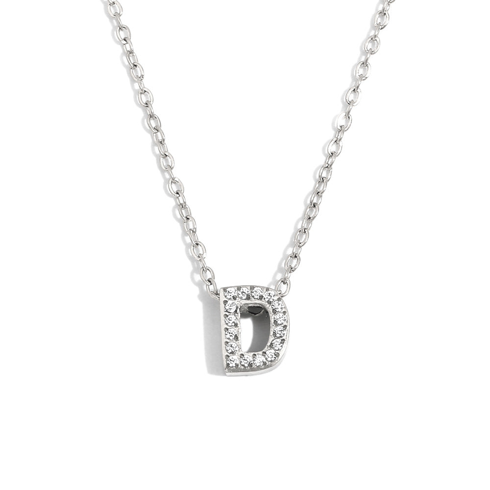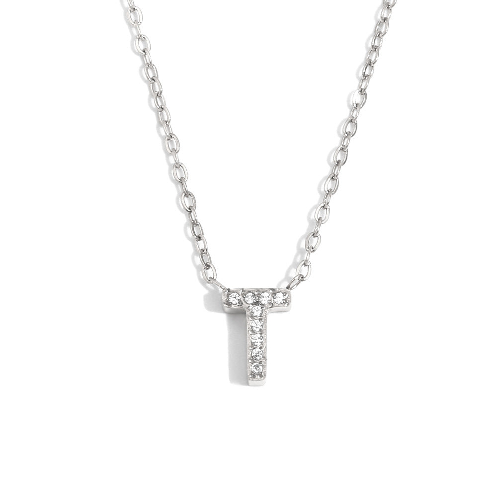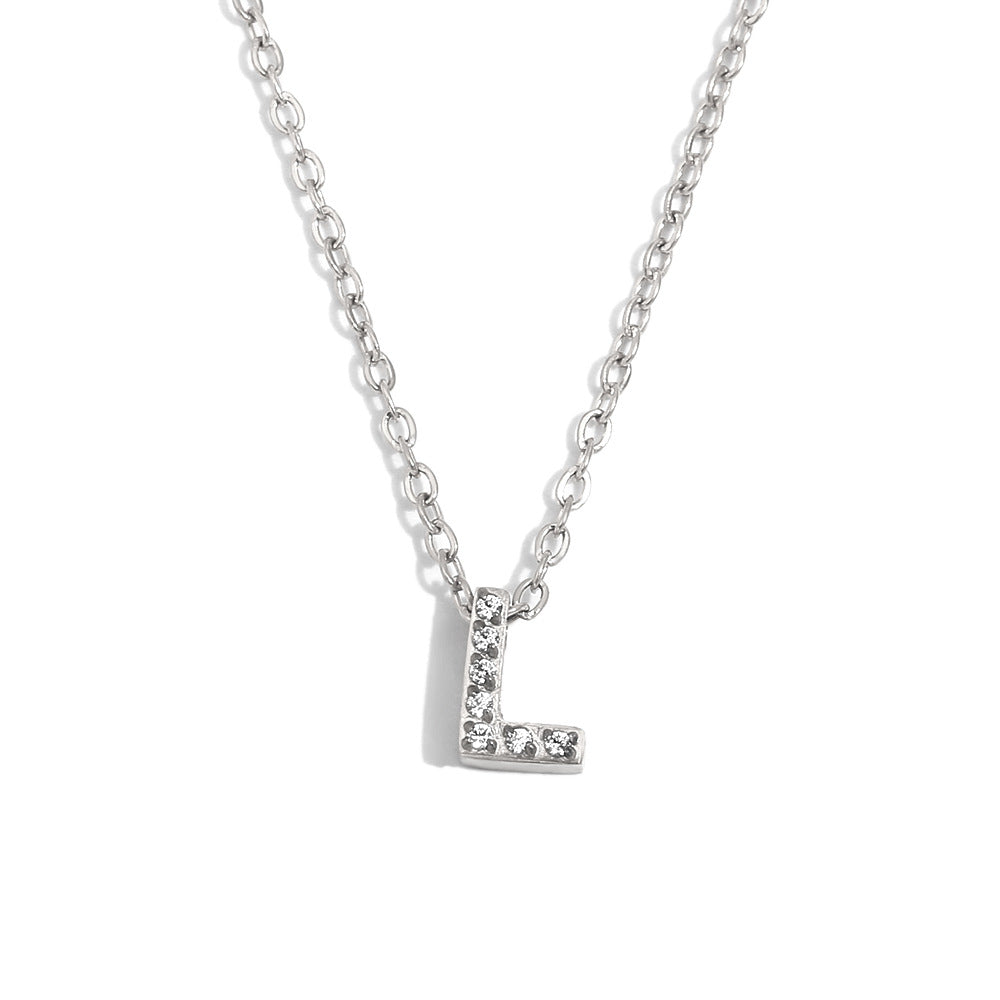 Fashionable And Simple 26 English Letter Pendant Stainless Steel Plated 18K Gold Diamond Small Letter Necklace For Women
