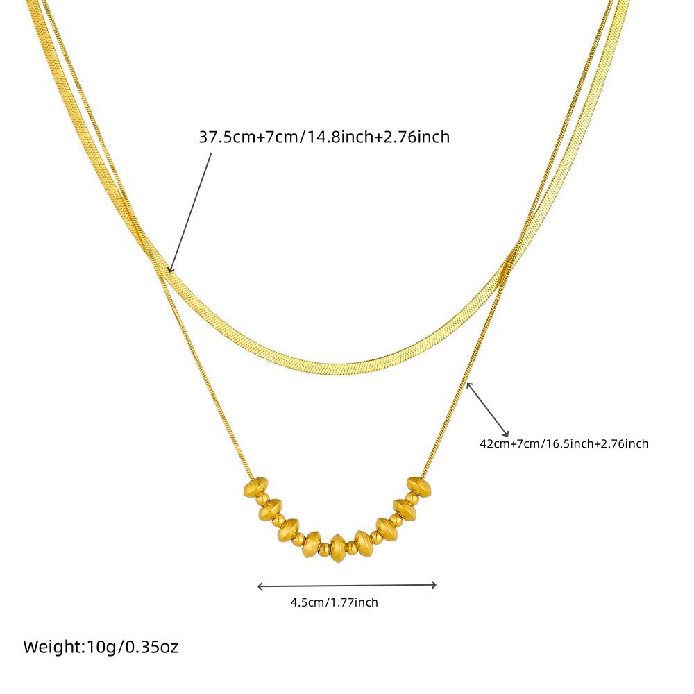 Fashionable And Simple Gold-Plated 18K Stainless Steel Stacked Double-Layer Geometric Oval Beaded Accessories Chain Necklace
