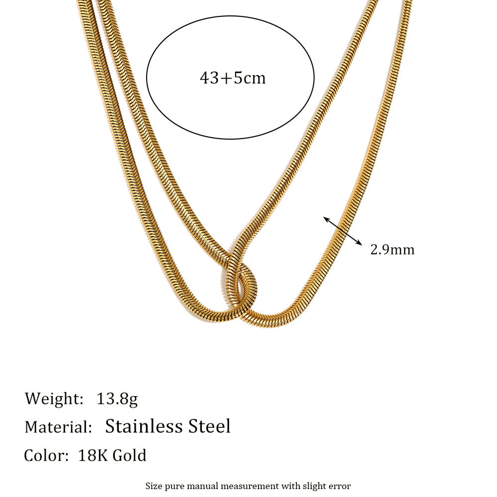 Fashionable And Simple Niche Hip-Hop Necklace Stainless Steel Plated 18K Gold Double Snake Chain Necklace For Women