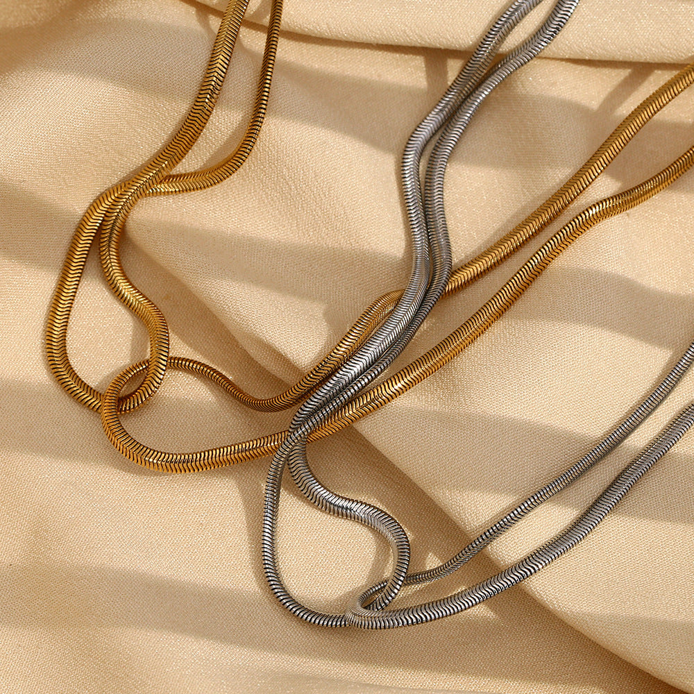 | Color | Double Layer Snake Chain Necklace-Gold, Double Layer Snake Chain Necklace-Steel Color |