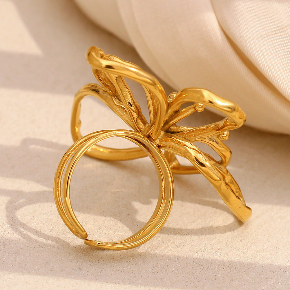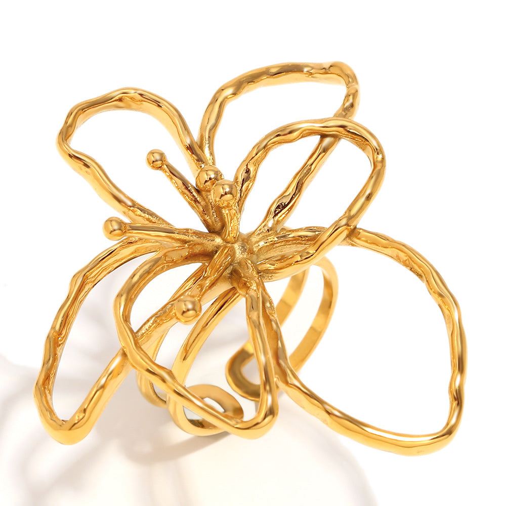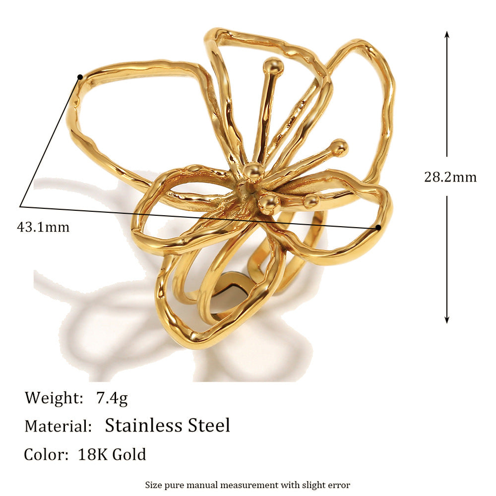 Fashionable And Simple Personality Hand Jewelry Stainless Steel Plated 18K Gold Line Flower Open Ring For Women