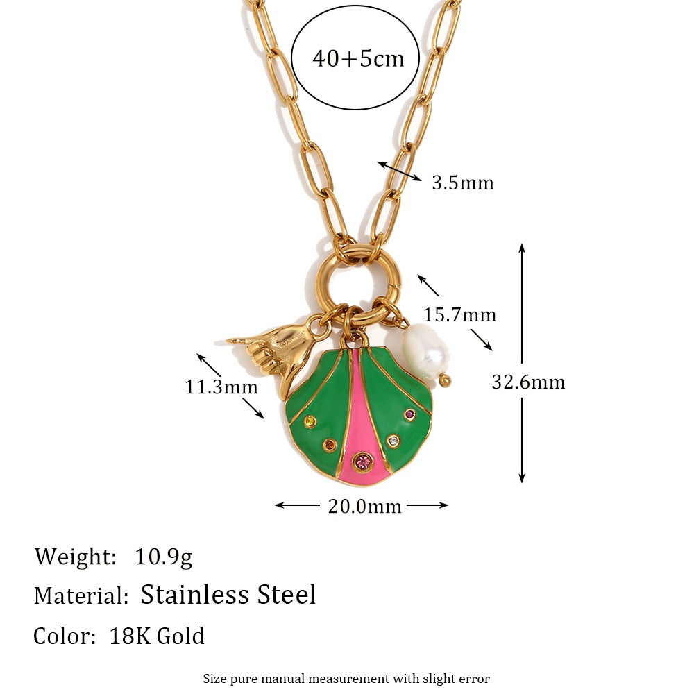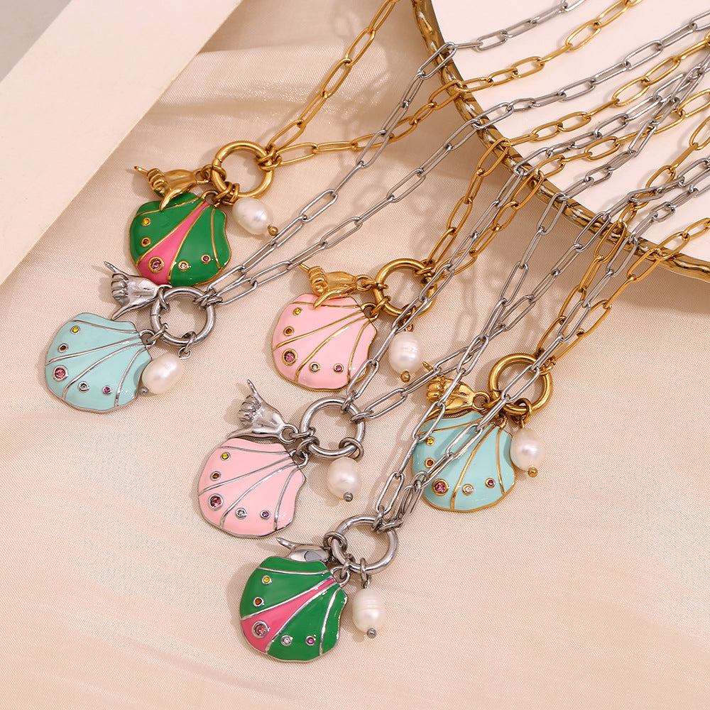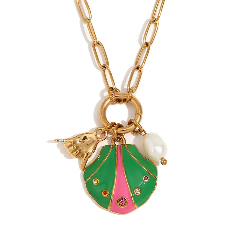 Fashionable Niche Design Pendant Stainless Steel Plated 18K Gold Color Diamond Shell Gesture Pendant Necklace