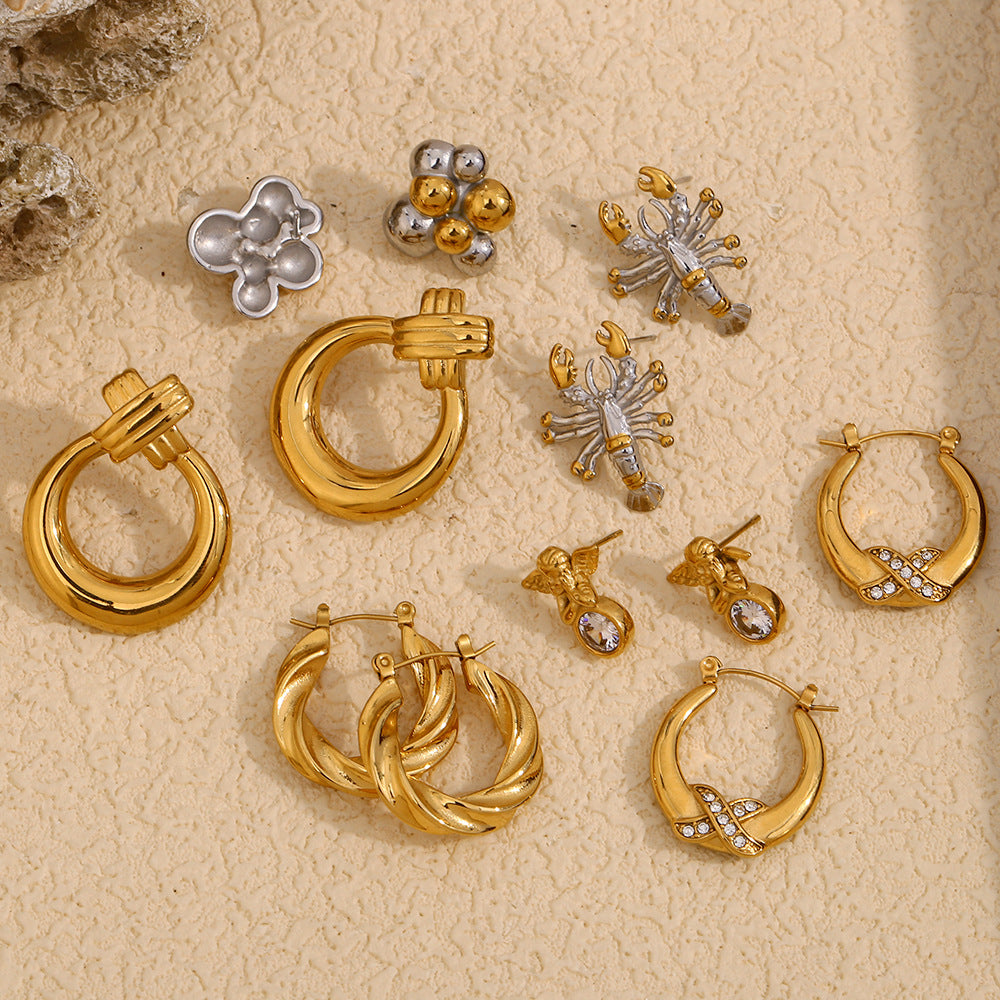 | Color | X Earrings-Gold, Lobster Earrings-Two Colors, Grape Earrings-Two Colors, Angel Zircon Stud Earrings-Gold, X Hoop Earrings-Two Colors, X Hoop Earrings-Gold, Twisted Round Earrings – Gold |
