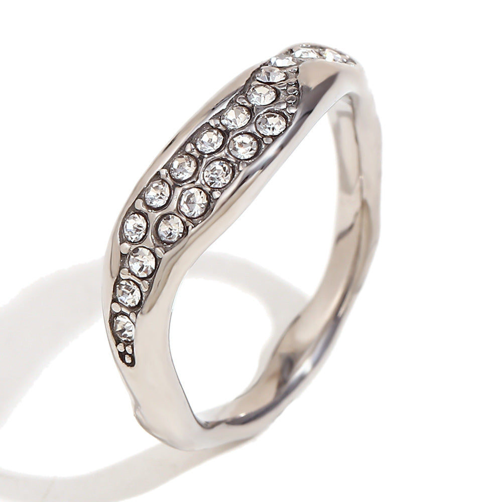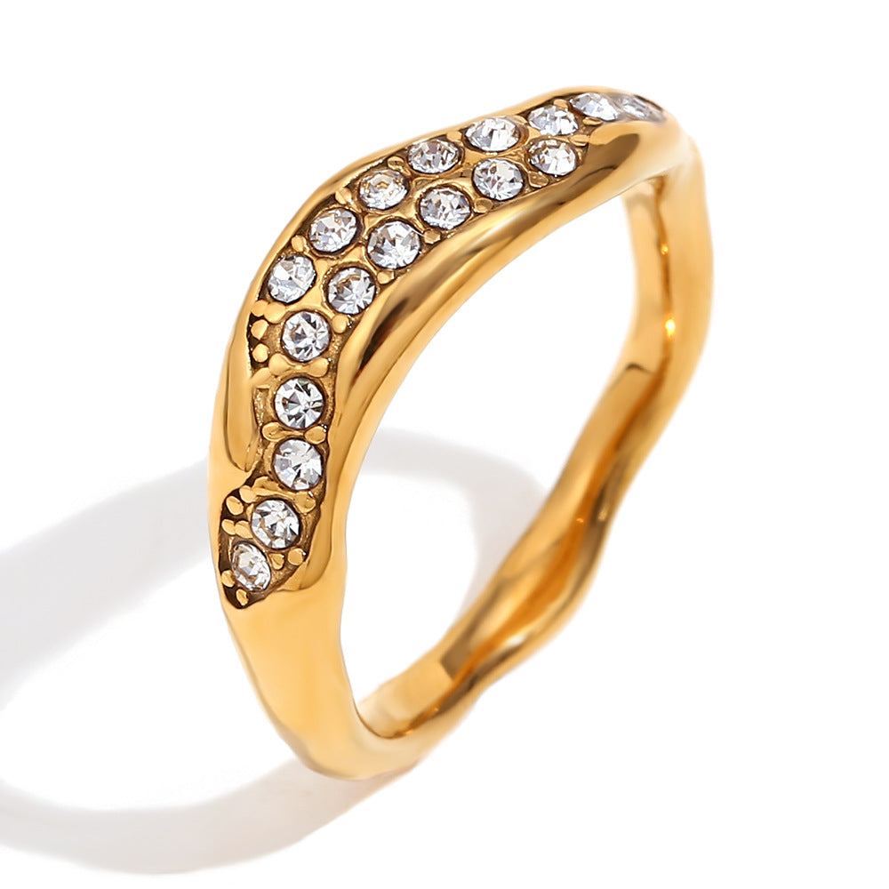 Fashionable Niche Personality Micro-Inlaid White Diamond Hand Jewelry Stainless Steel Plated 18K Gold Dot Diamond Irregular Ring