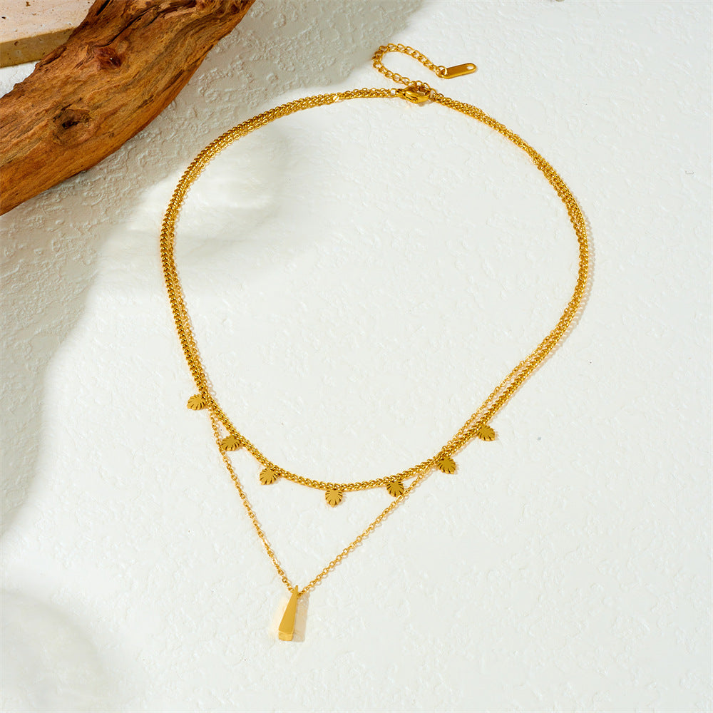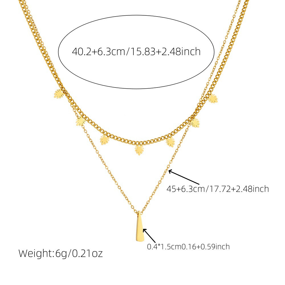 Fashionable Simple And Versatile Design Leaf Water Drop Pendant Gold-Plated Double-Layered Stainless Steel Chain Necklace