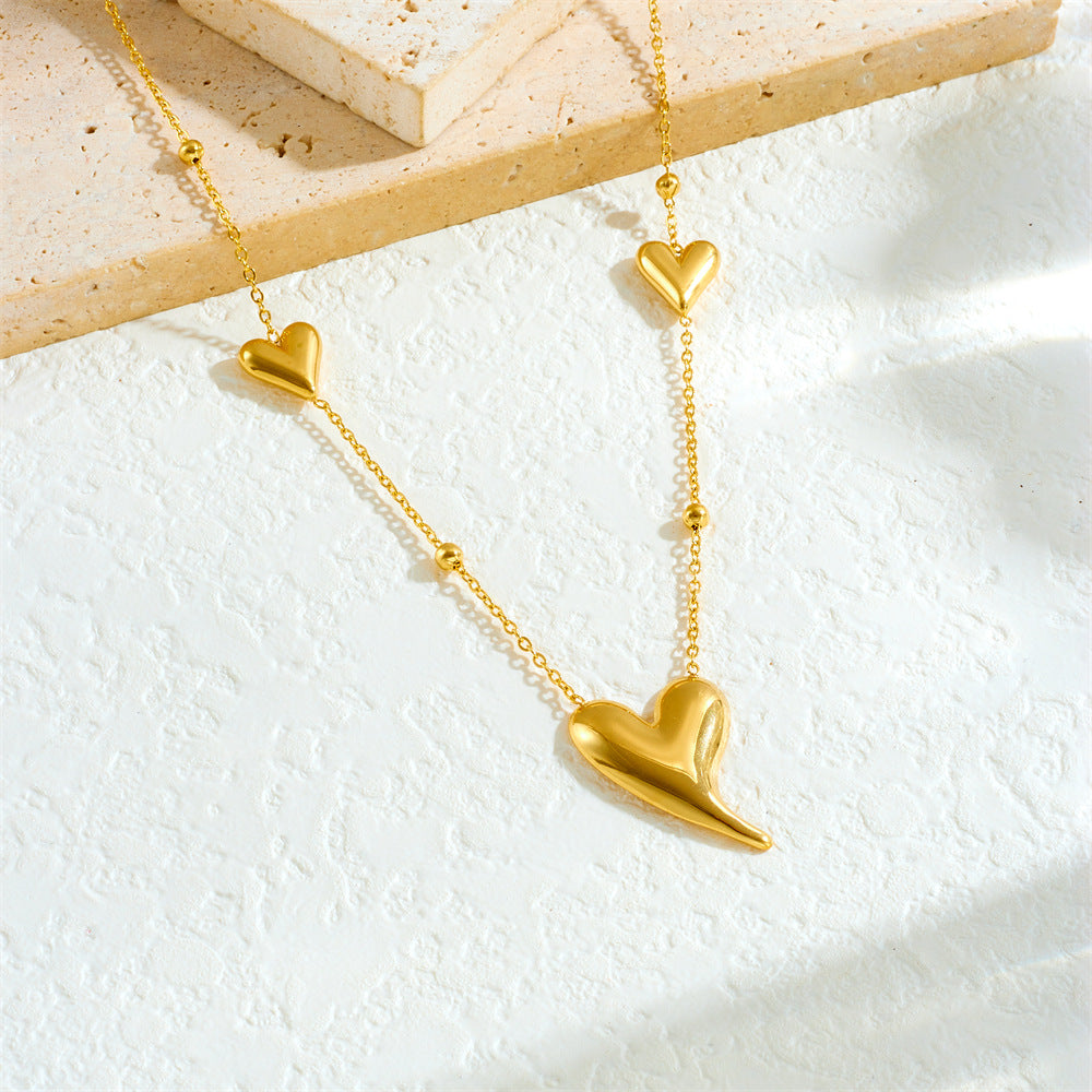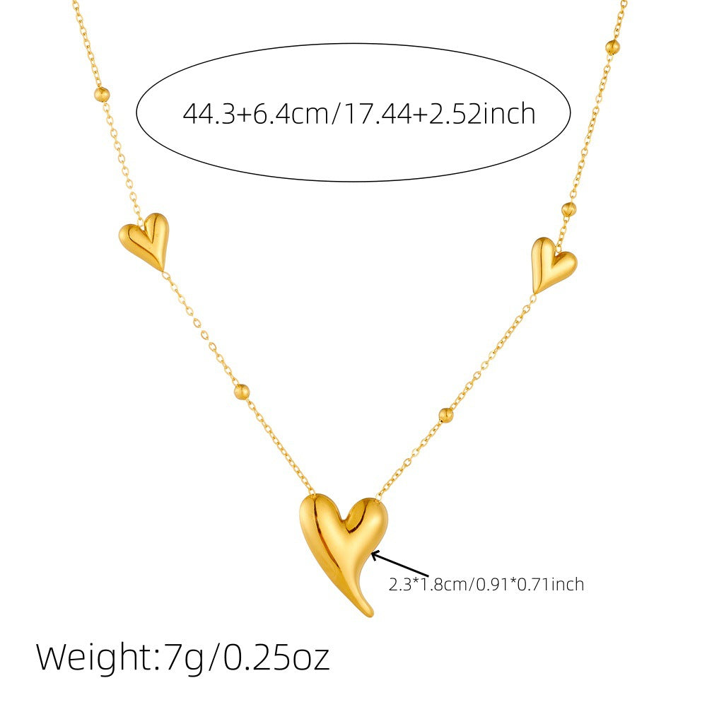 Fashionable Simple And Versatile Glossy Gold-Plated Irregular Three-Dimensional Love Accessory Chain Stainless Steel Clavicle Necklace