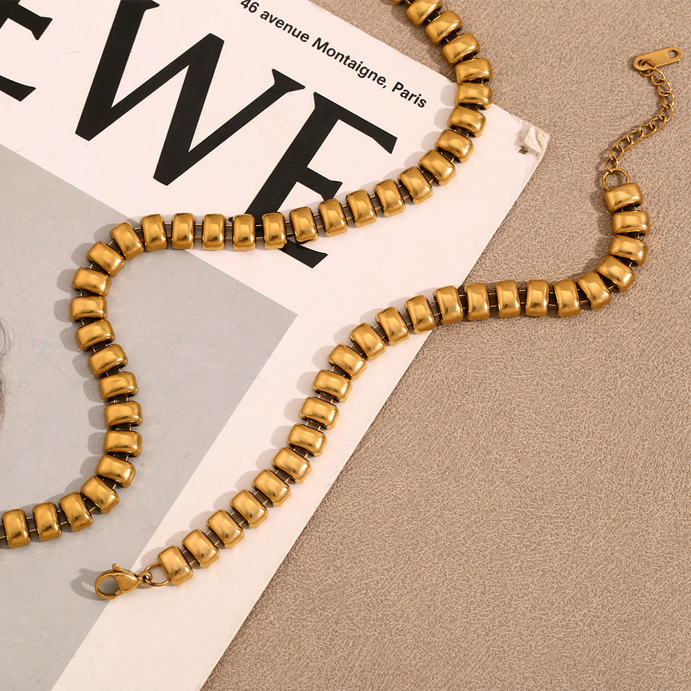 Fashionable Simple Niche Design Necklace Stainless Steel Plated 18K Gold Joint Elastic Bean Bracelet Female