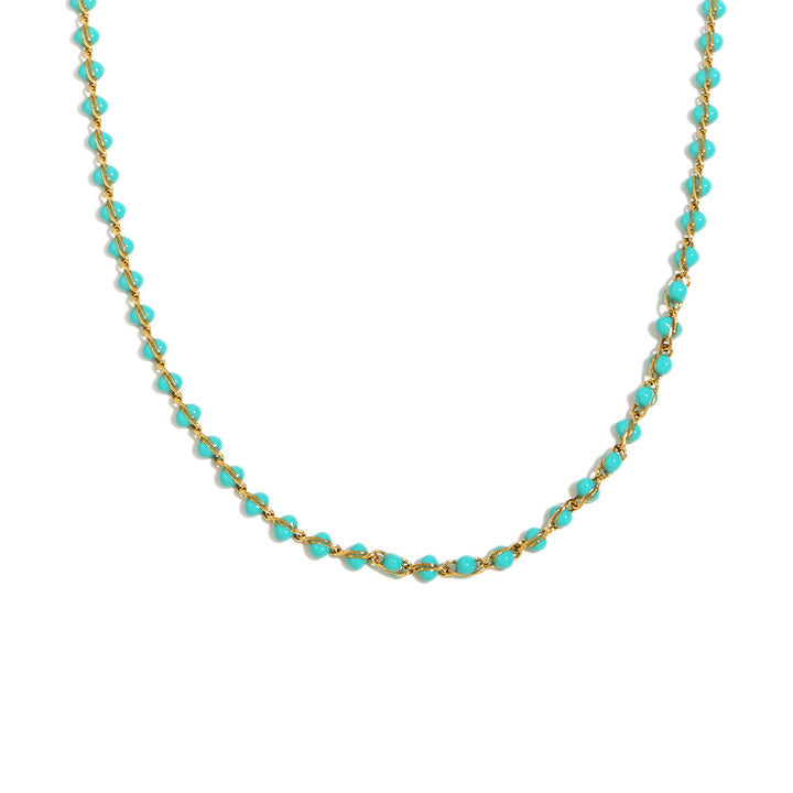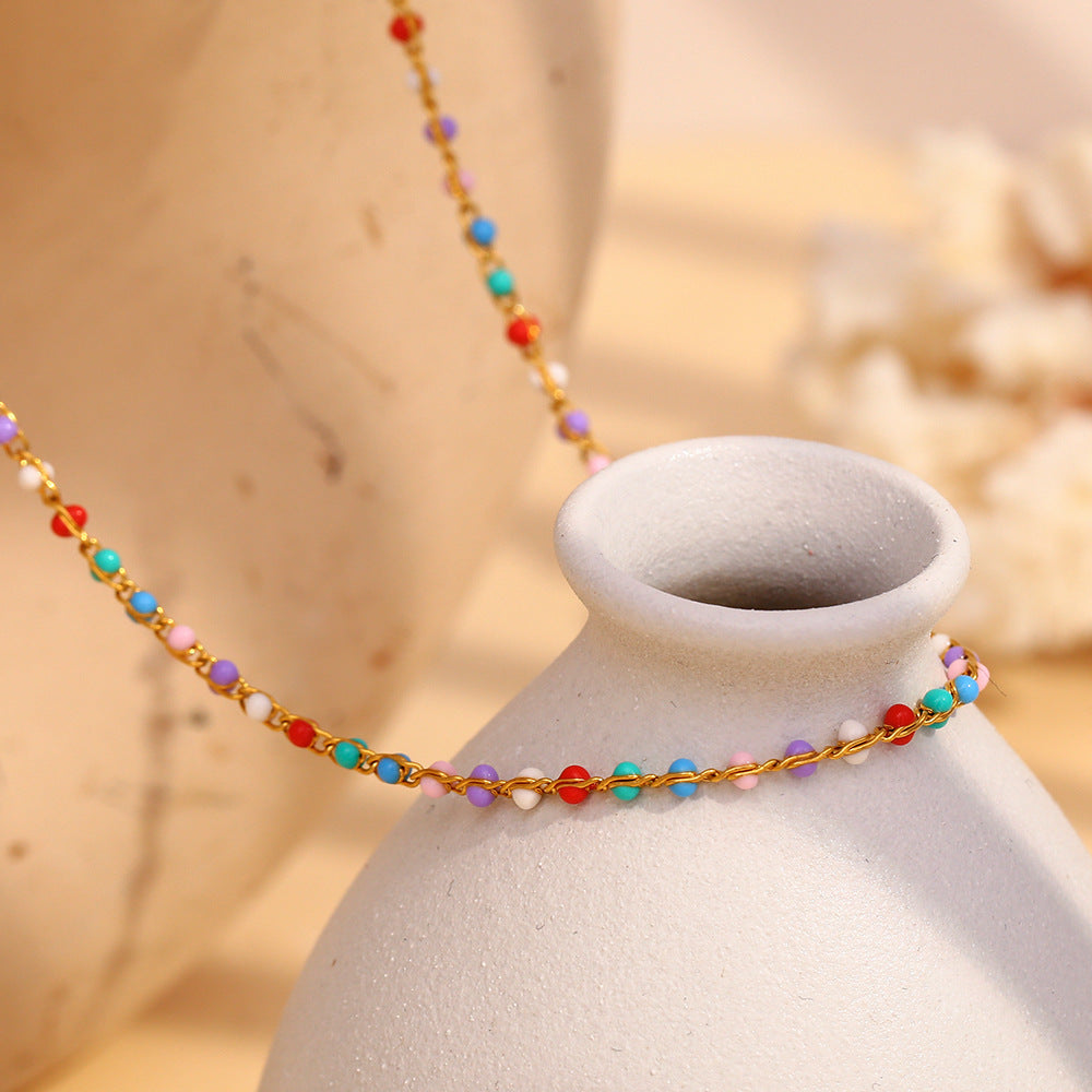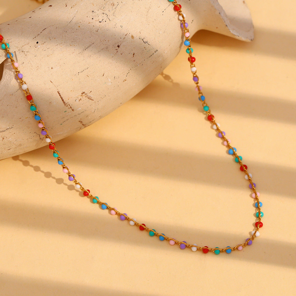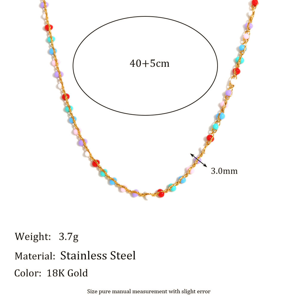 Fashionable Small Fresh Pendant Stainless Steel Plated 18K Gold Personalized Color Dripping Small Bead Necklace For Women
