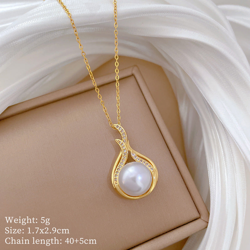 Fishtail Pearl Full Diamond Fashion Gorgeous Full Diamond Necklace Female Versatile Clavicle Chain Titanium Steel