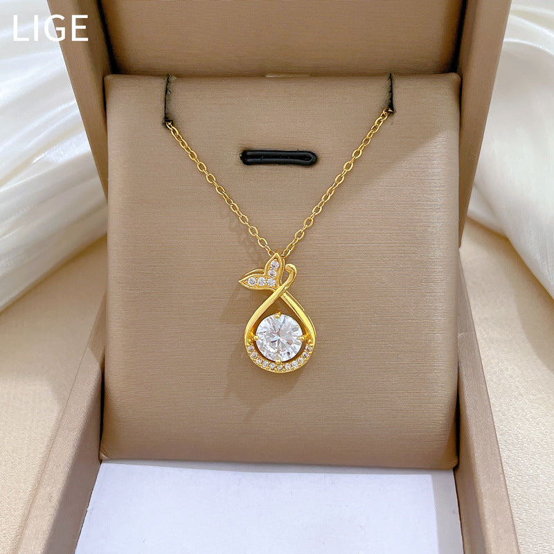 Fishtail Water Drop Full Diamond Fashion Gorgeous Full Diamond Necklace Female Versatile Clavicle Chain Titanium Steel