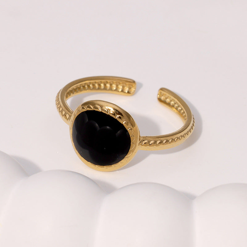 French Retro Geometric Simple Versatile Oil Drop Ring Gold-Plated Stainless Steel Ring For Women