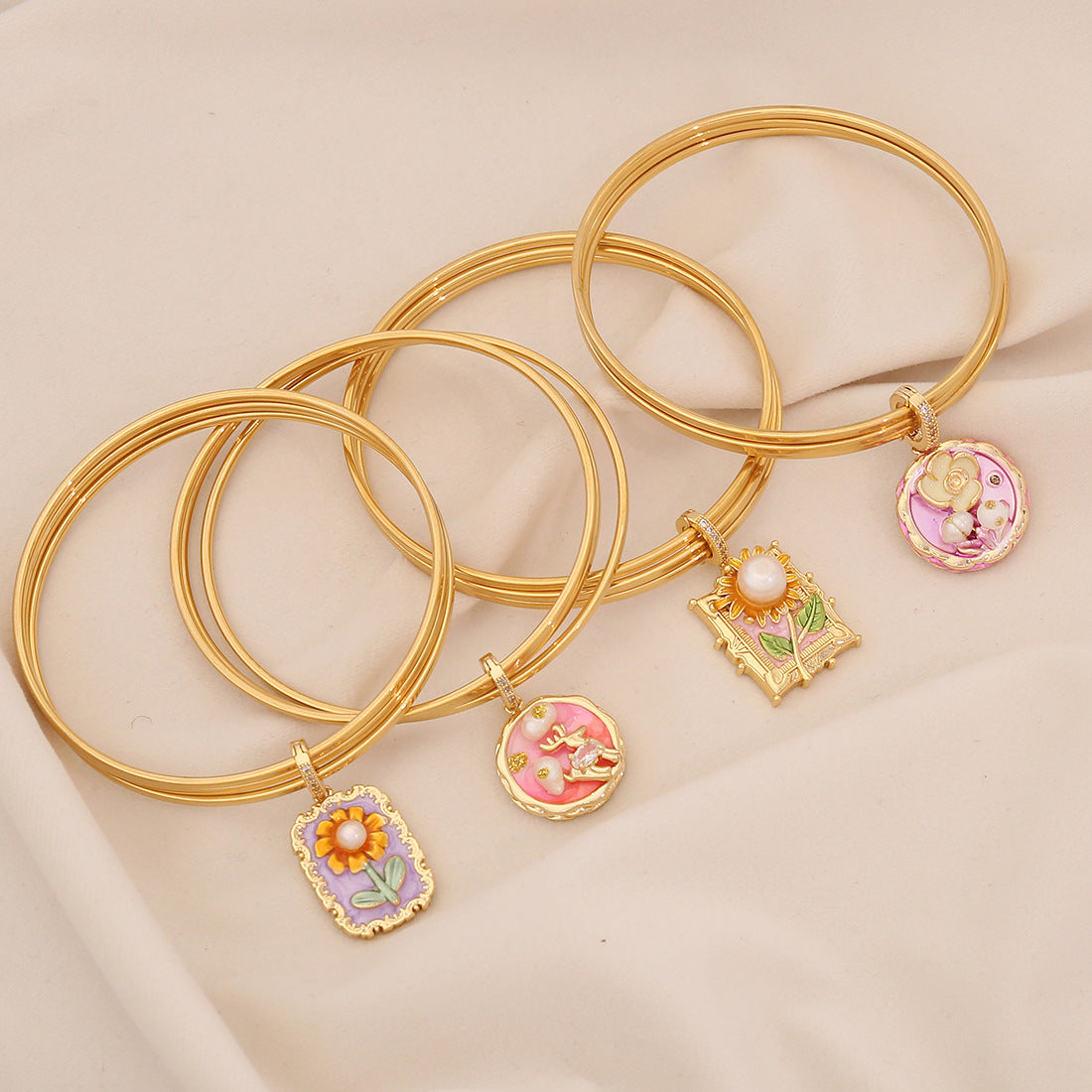 French Retro Oil Drip Bracelet Personality Diy Stainless Steel Jewelry B633