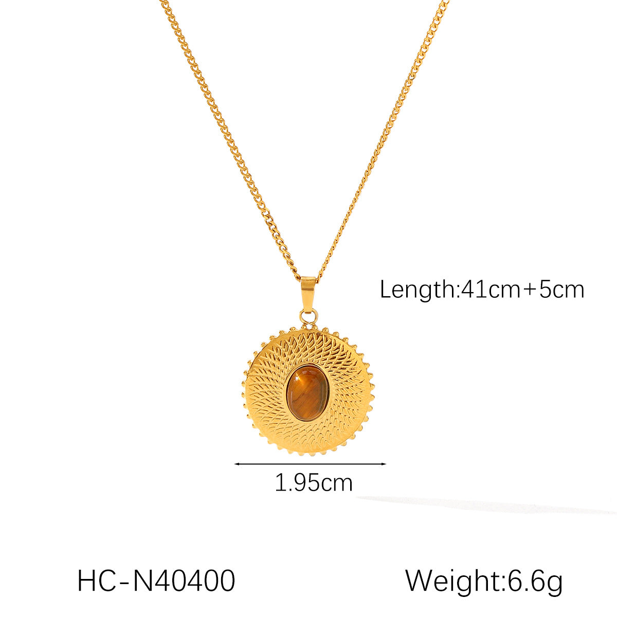 Be the first to review “French Retro Round Texture Stainless Steel Inlaid Tiger Eye Stone Pendant Necklace Female Versatile Titanium Steel Necklace” Cancel reply
