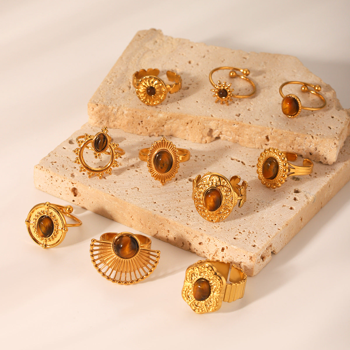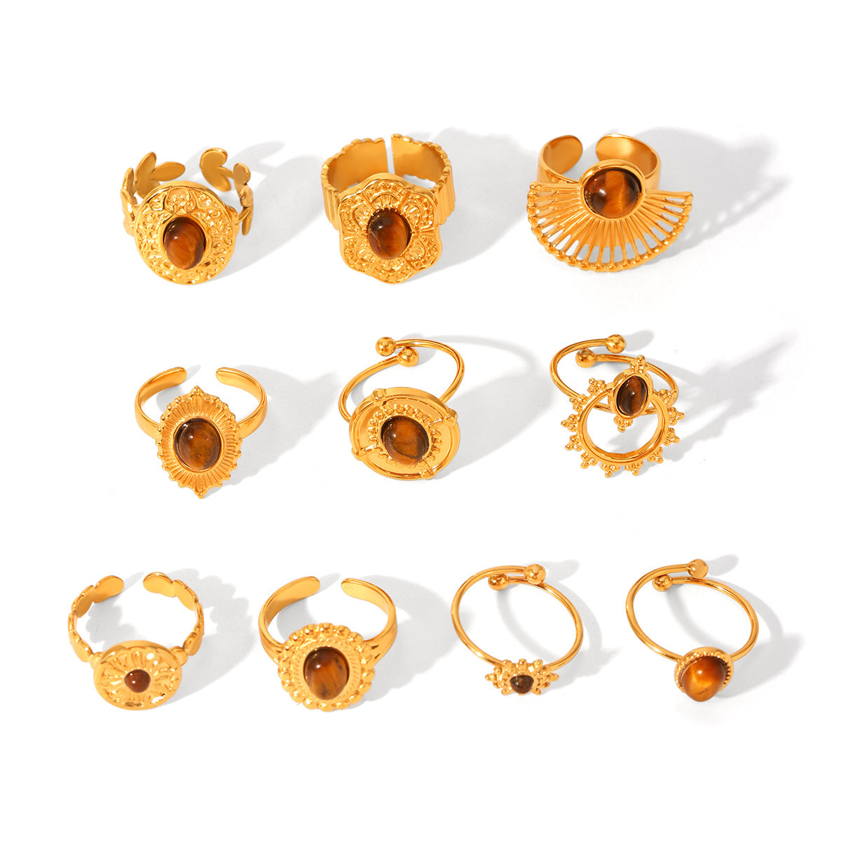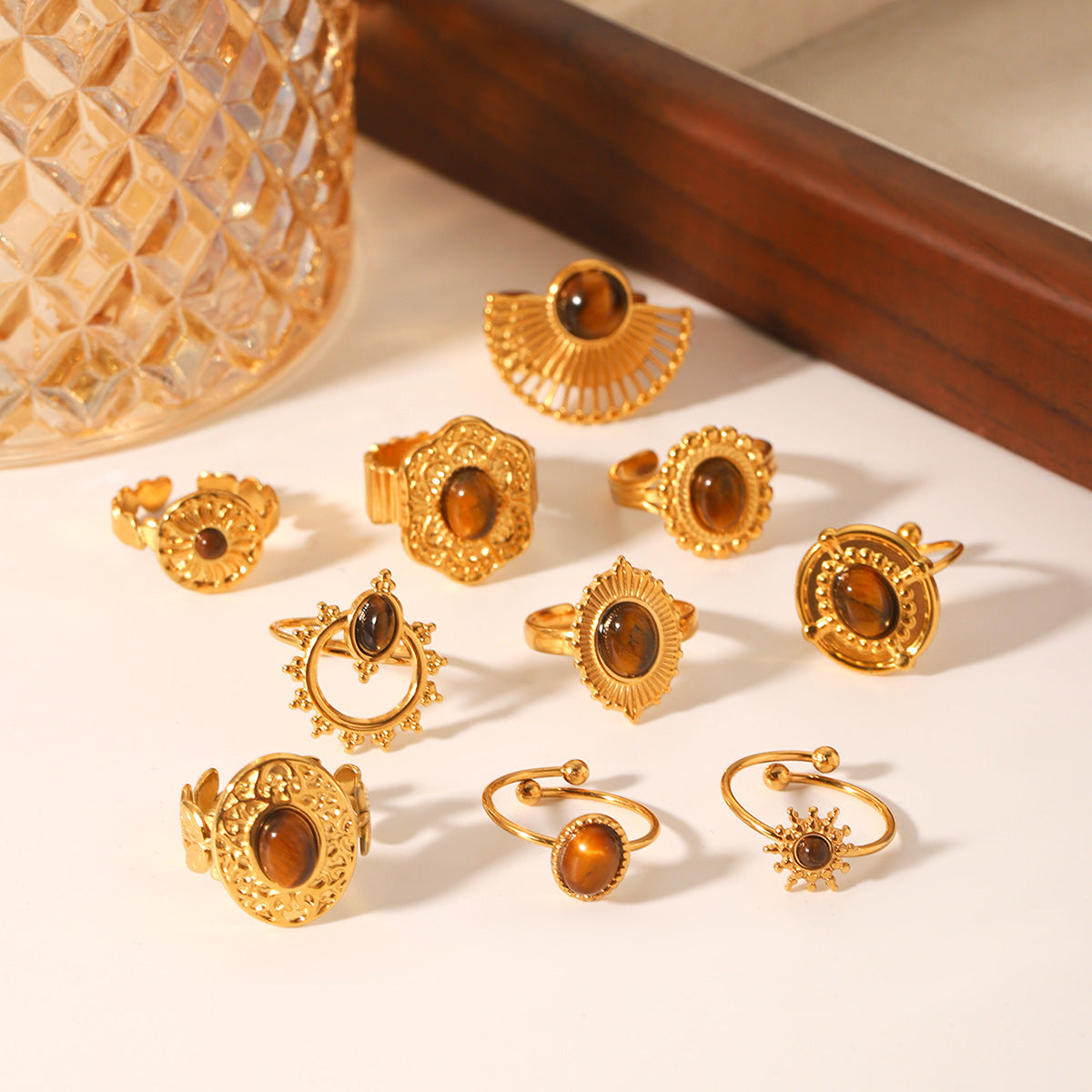 Be the first to review “French Retro Stainless Steel Inlaid Natural Tiger Eye Stone Ring Female All-Match Geometric Titanium Steel Ring” Cancel reply