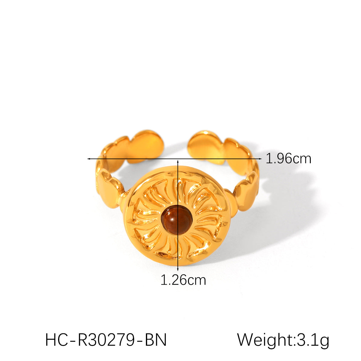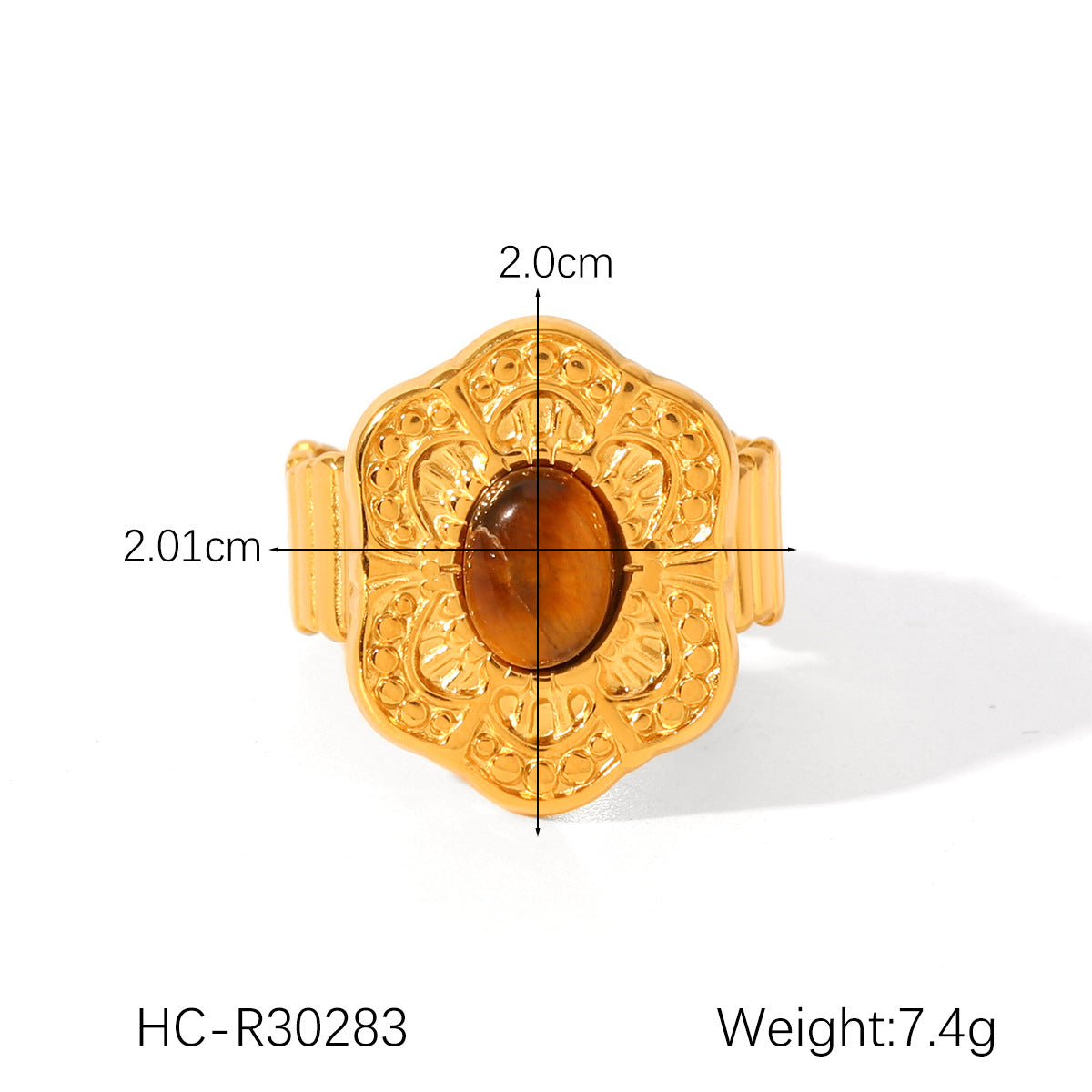 French Retro Stainless Steel Inlaid Natural Tiger Eye Stone Ring Female All-Match Geometric Titanium Steel Ring