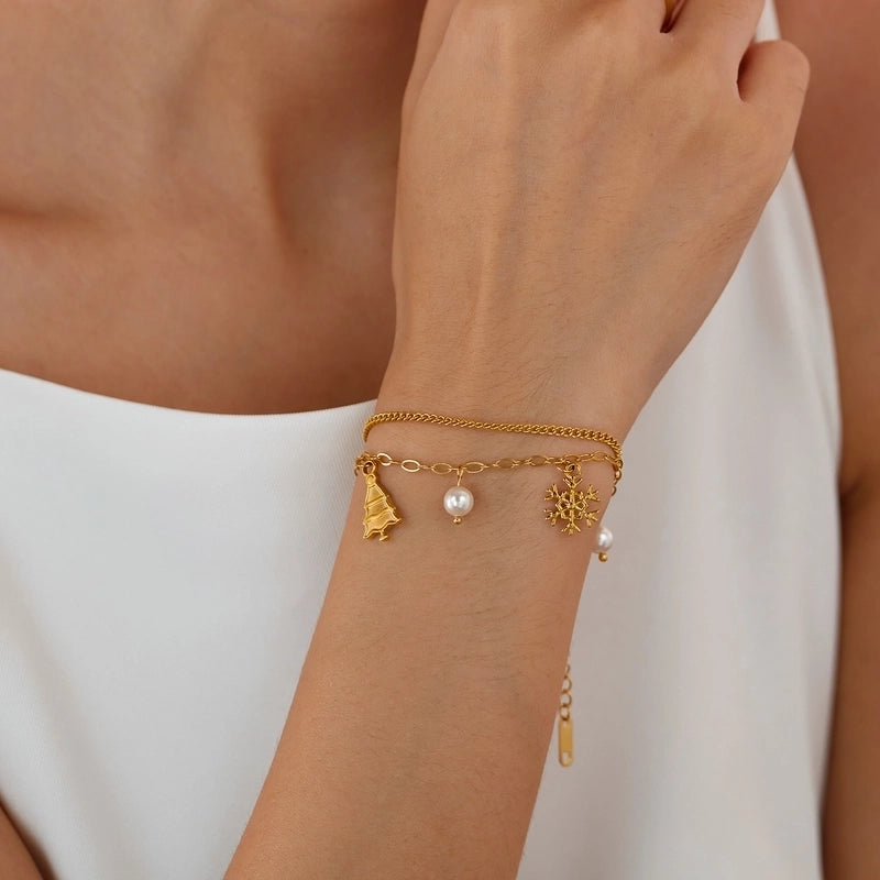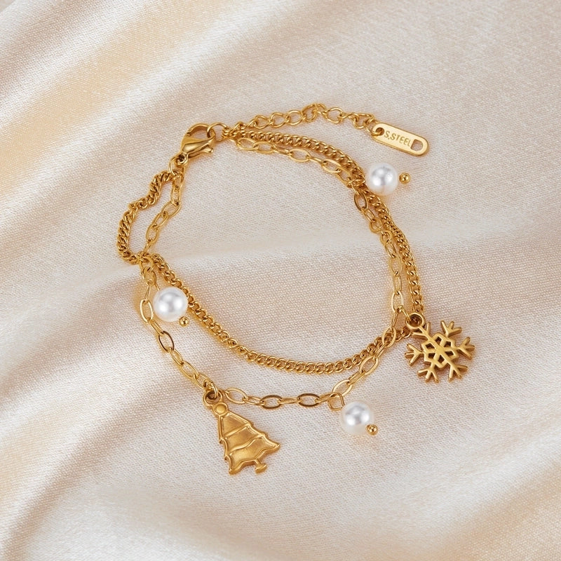 French Style Minimalist IG Style Christmas Tree Snowflake 304 Stainless Steel Bracelets In Bulk Christmas