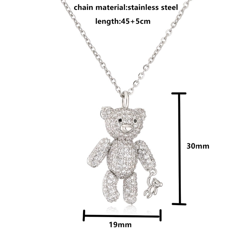 Full Diamond Bear Copper Necklace Micro Inlaid Zircon Cute Bear With Little Bear Pendant Necklace