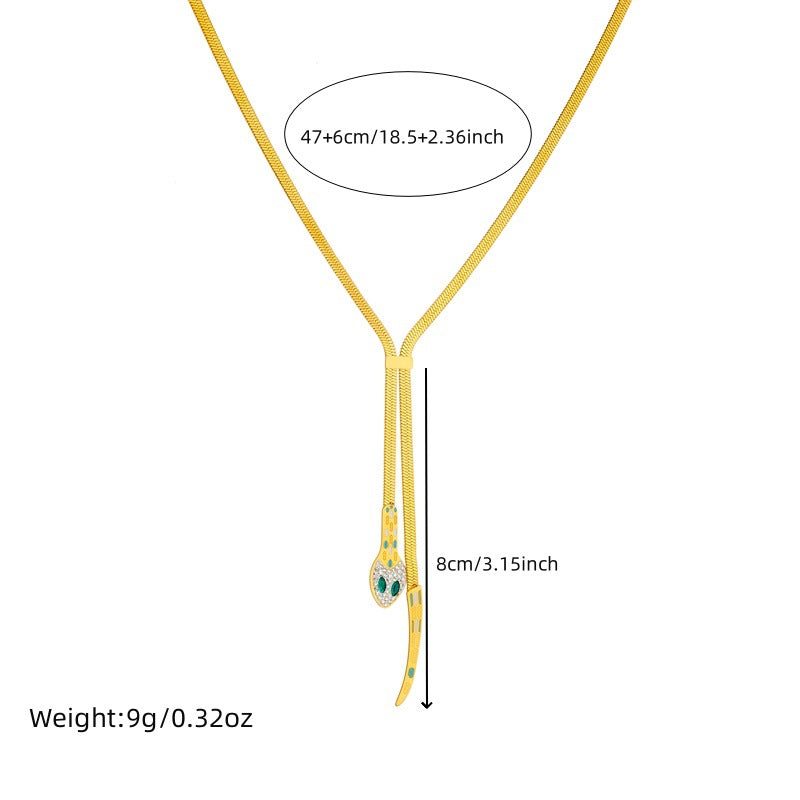 Full Diamond Snake Head Snake Tail Snake Bone Chain Heavy Stainless Steel Gold-Plated Chain Women’S Necklace