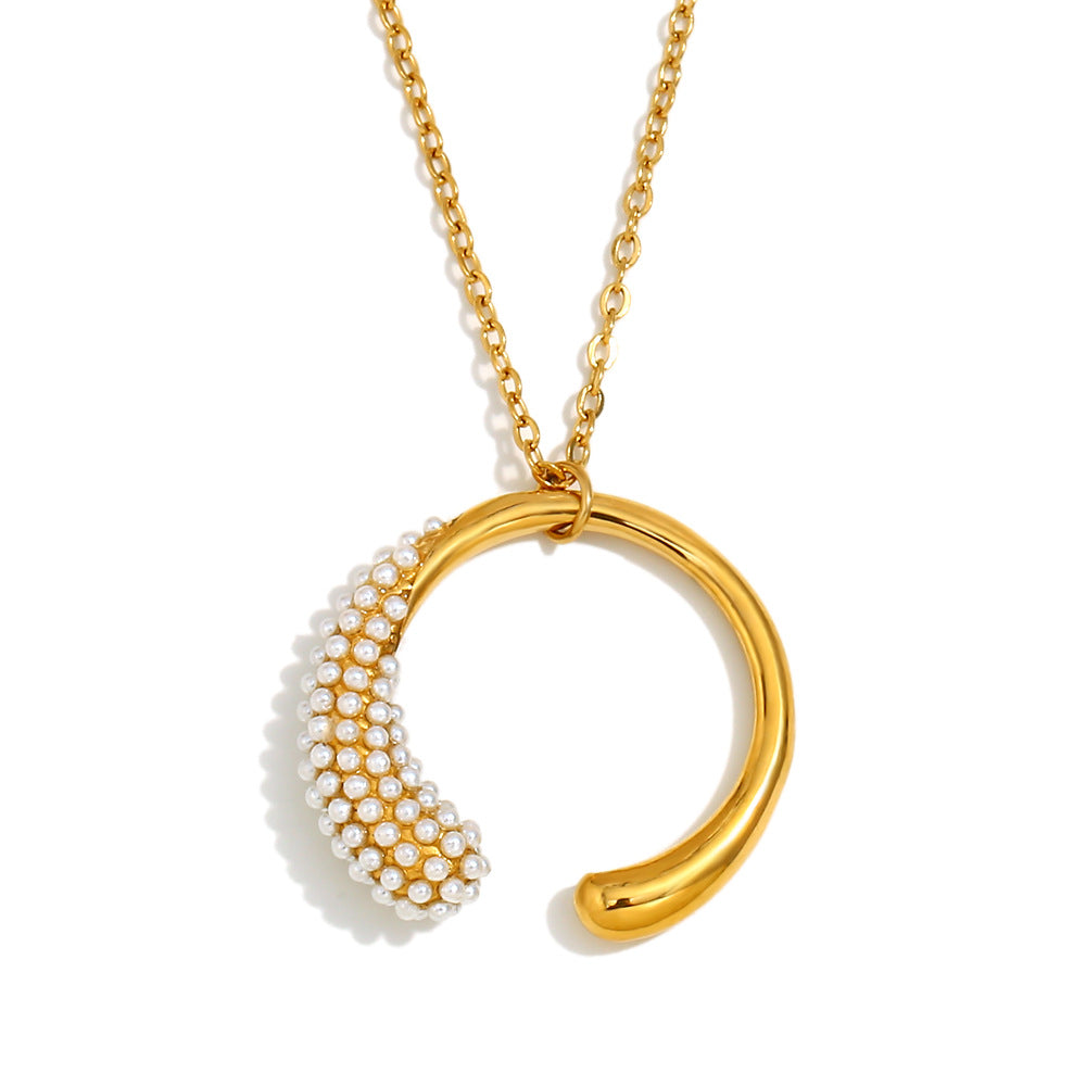 | Color | Half-Set Moon Pendant Necklace-Gold-Pearl |