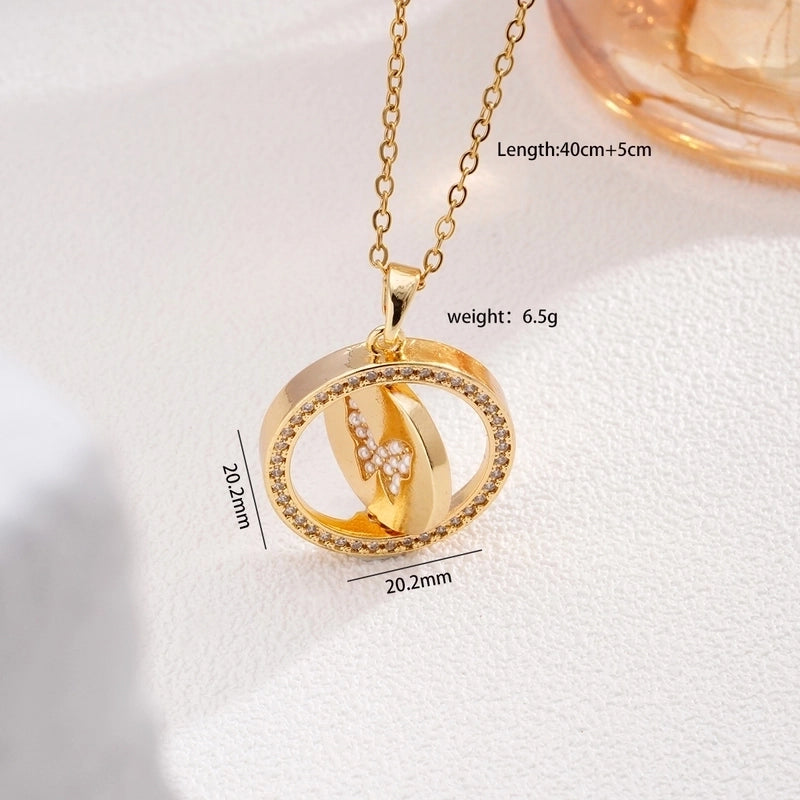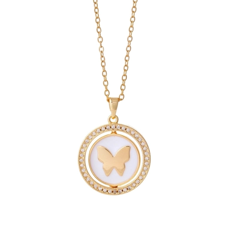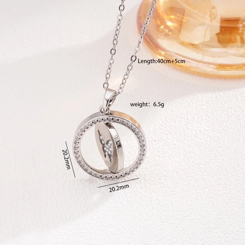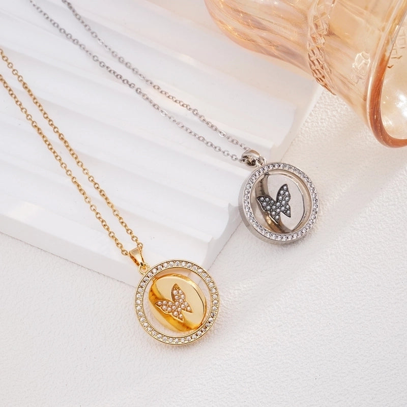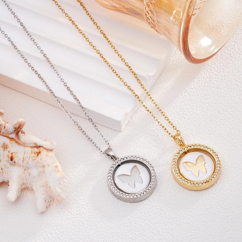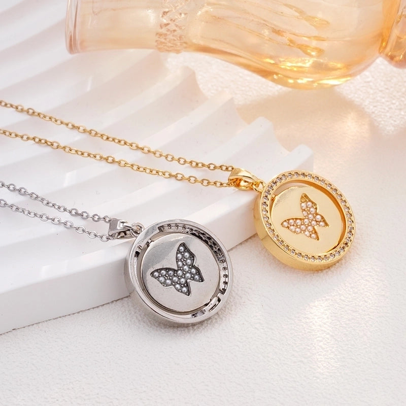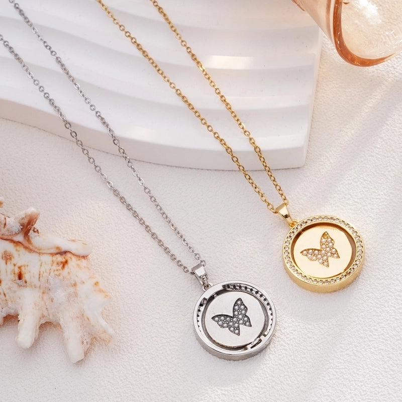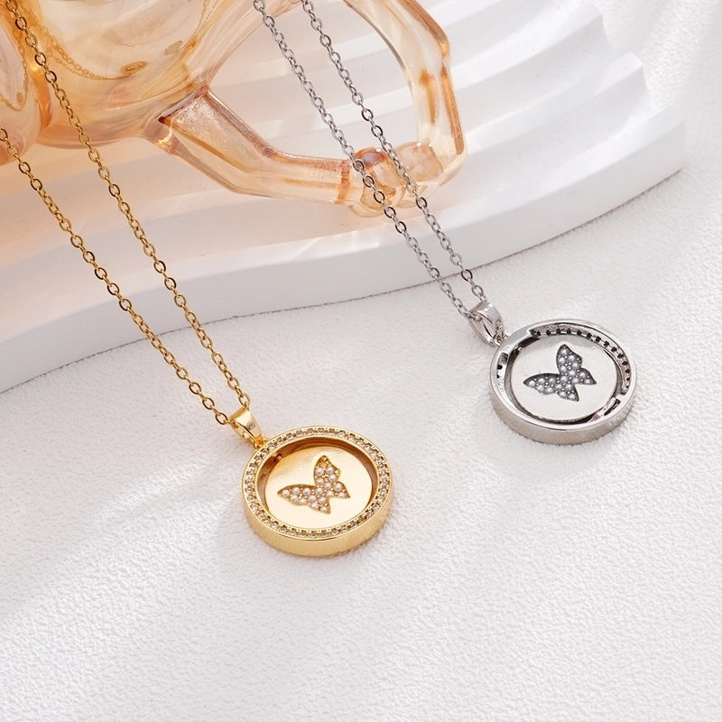 Glam Round Butterfly 304 Stainless Steel Copper Shell Zircon Inlay Pendant Necklace