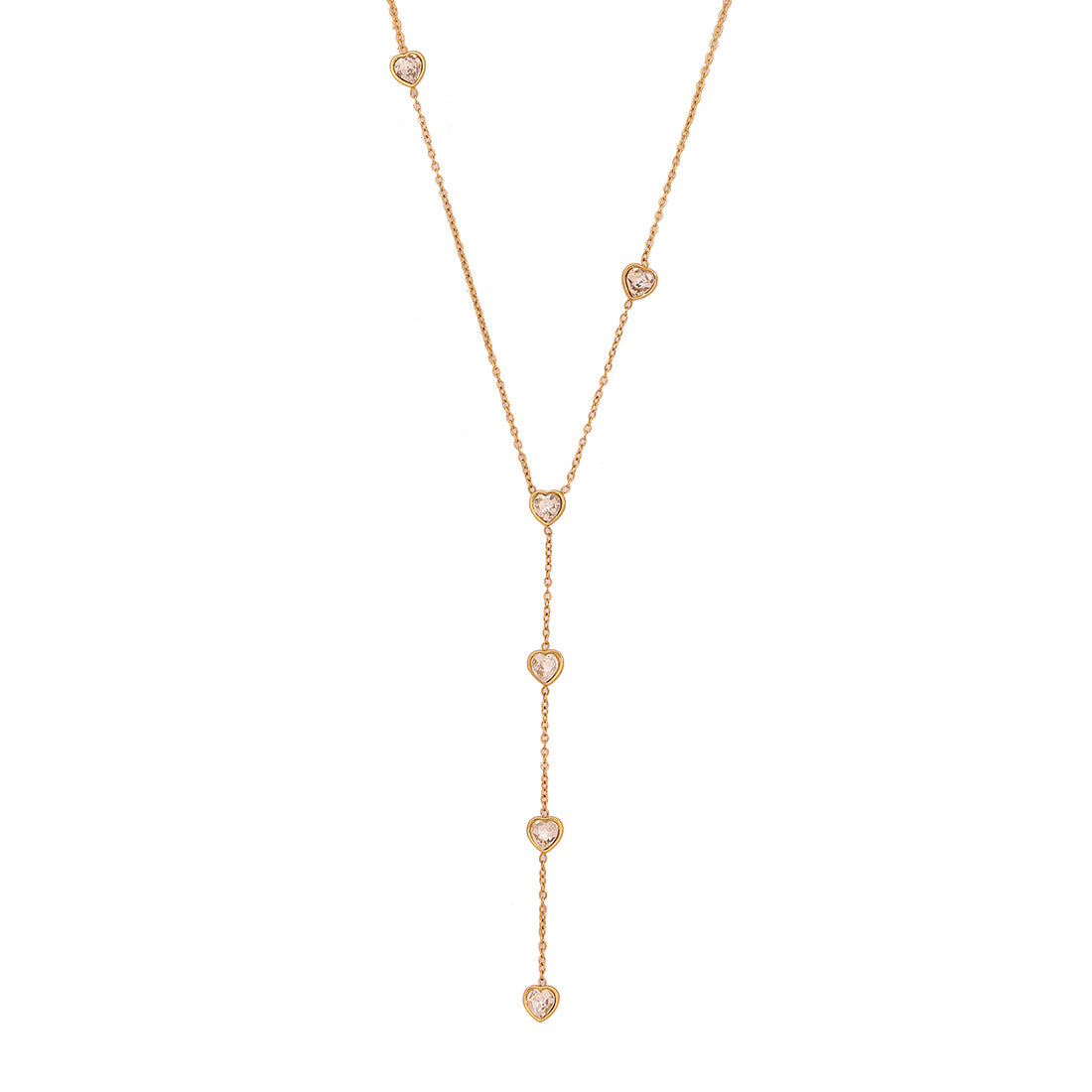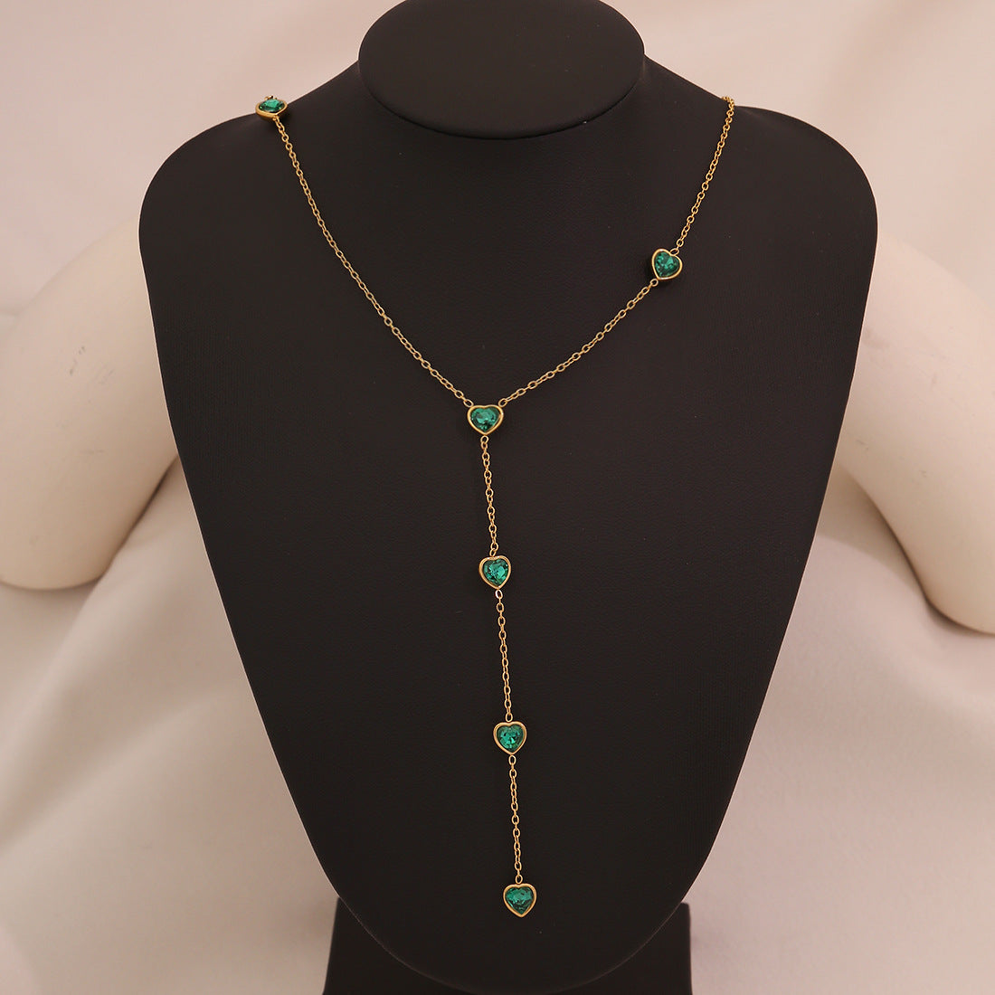 Glass Heart Stainless Steel Necklace Fashion Y Shape Necklace Versatile Clavicle Chain N1522
