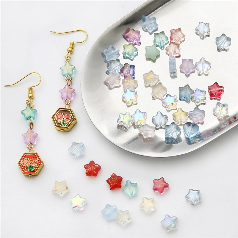 Glass Pentagonal Stars Beaded Beads DIY Handmade Antique Glaze Hairpin Earrings Material Accessories