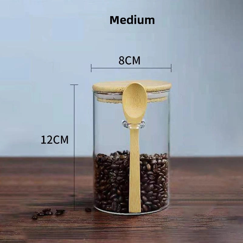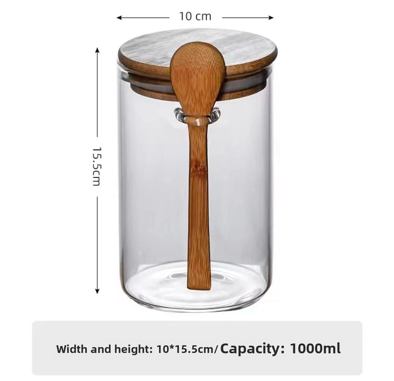 Glass Sealed Jar With Lid Storage Jar In Stock Grains Dried Fruit Storage Jar Kitchen Storage Glass Bottle Wooden Spoon