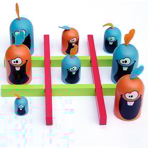 Cartoonish characters bring pizzazz to this Tic-Tac-Toe style game. Just line up three of your Gobblers in a row to win. But watch out! These Gobblers are hungry for fun…and other Gobblers.
