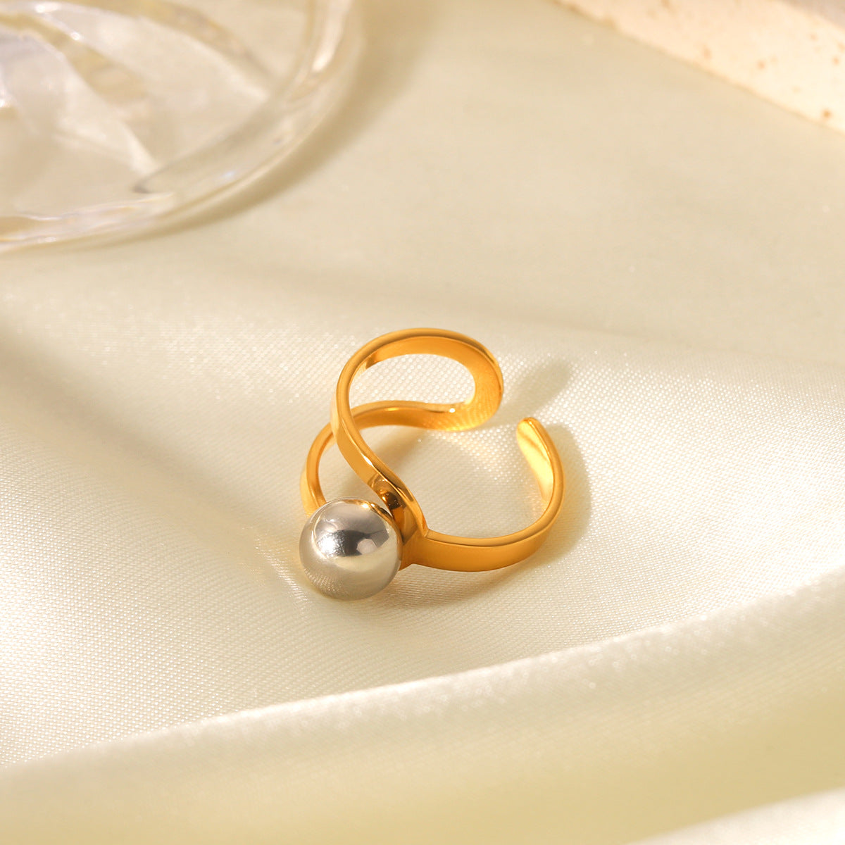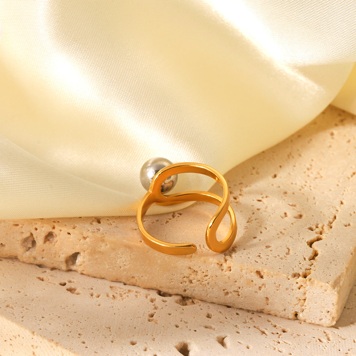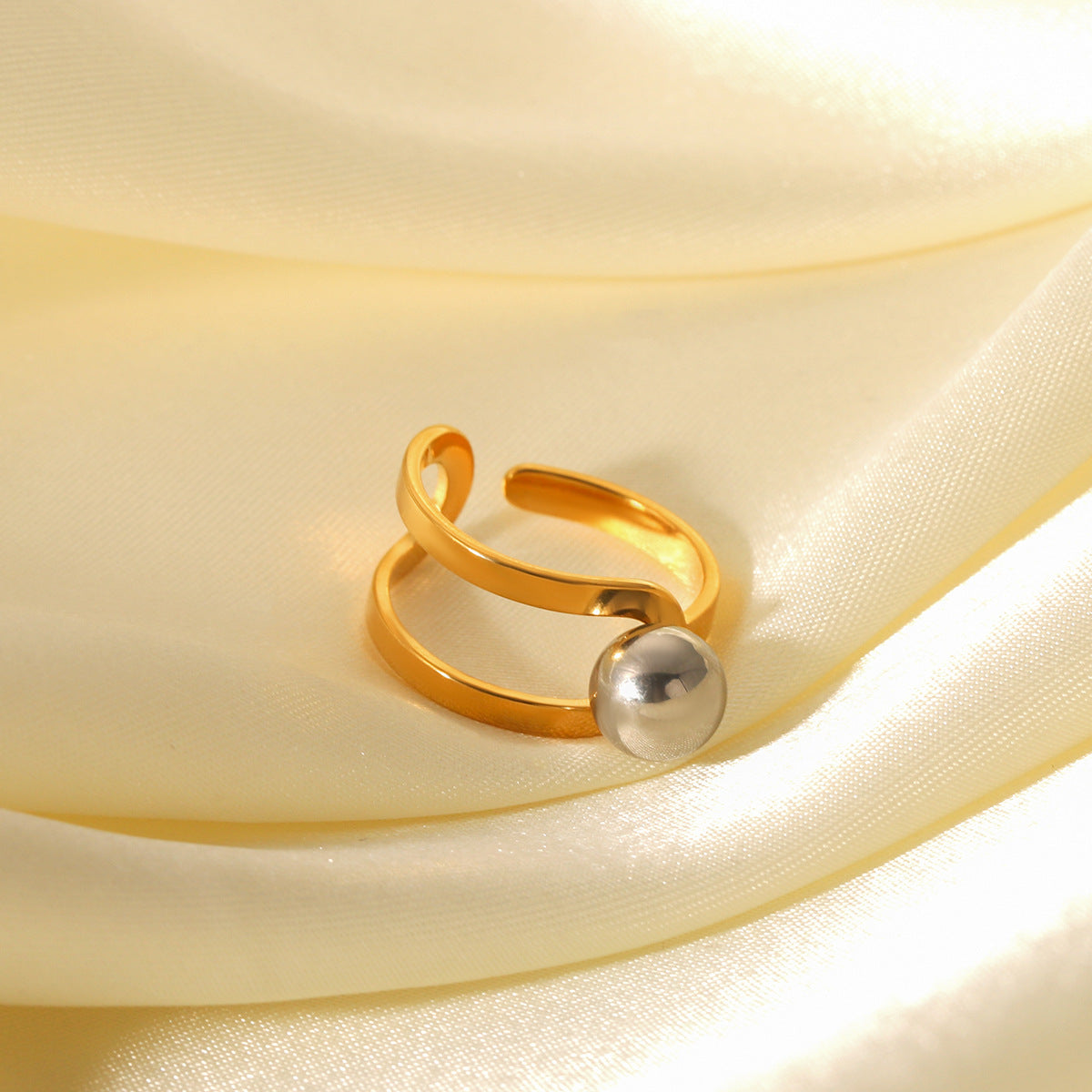 Gold And Silver Color Matching Stainless Steel Ring Hollow Line Steel Bead Open Ring Titanium Steel Ring
