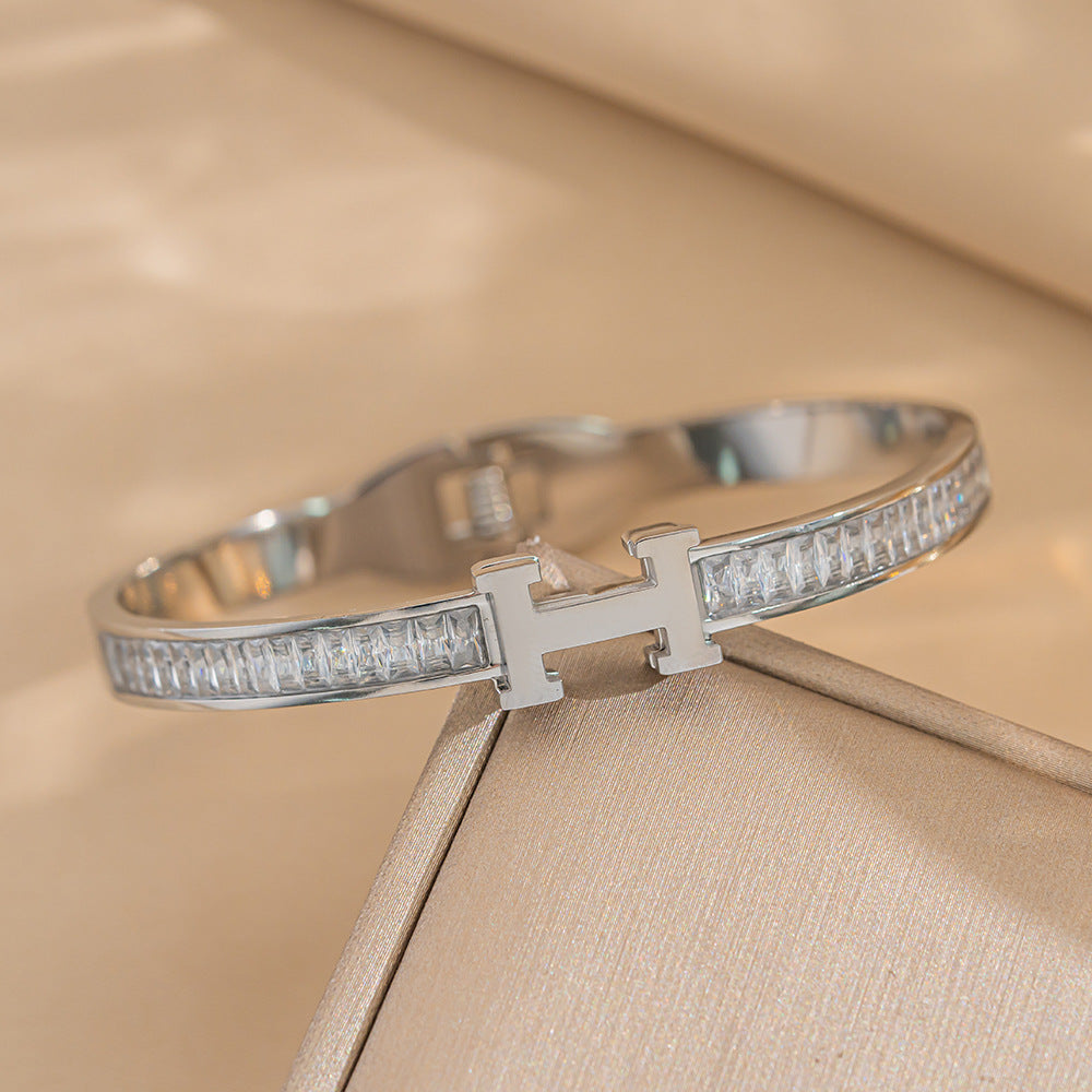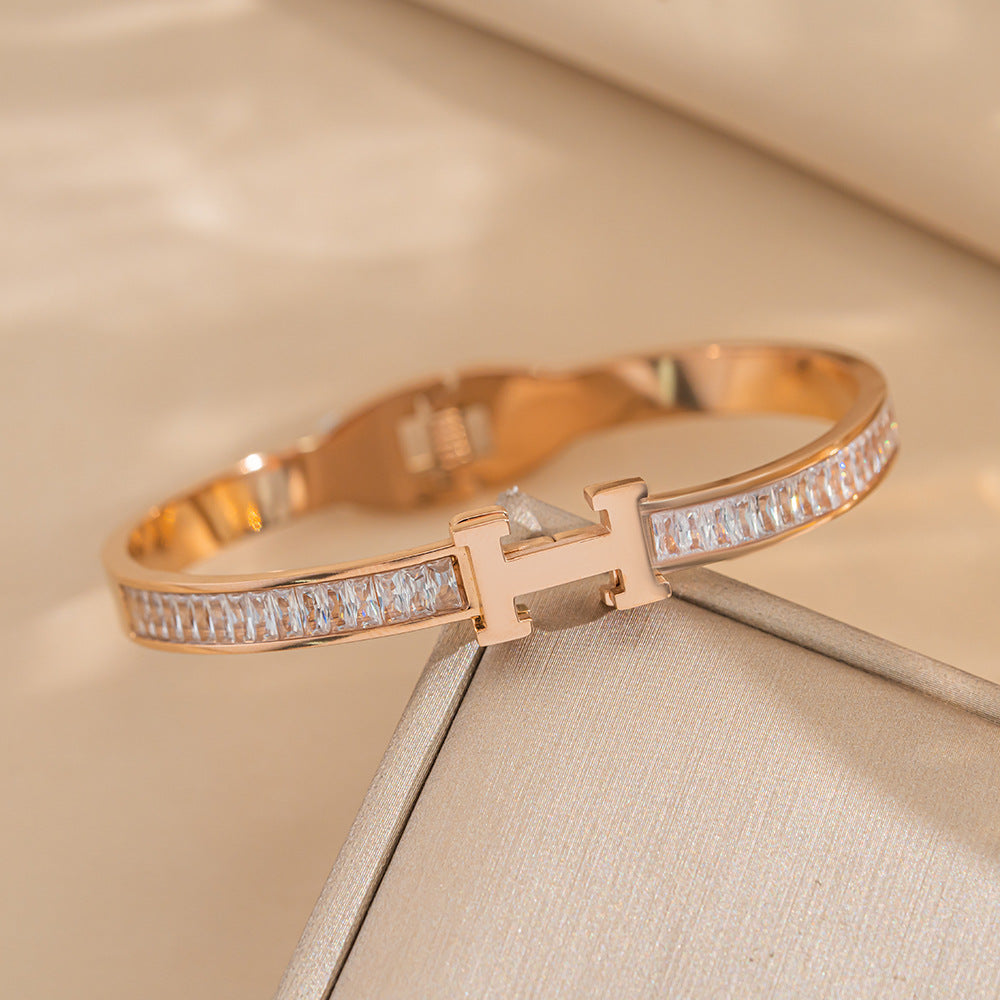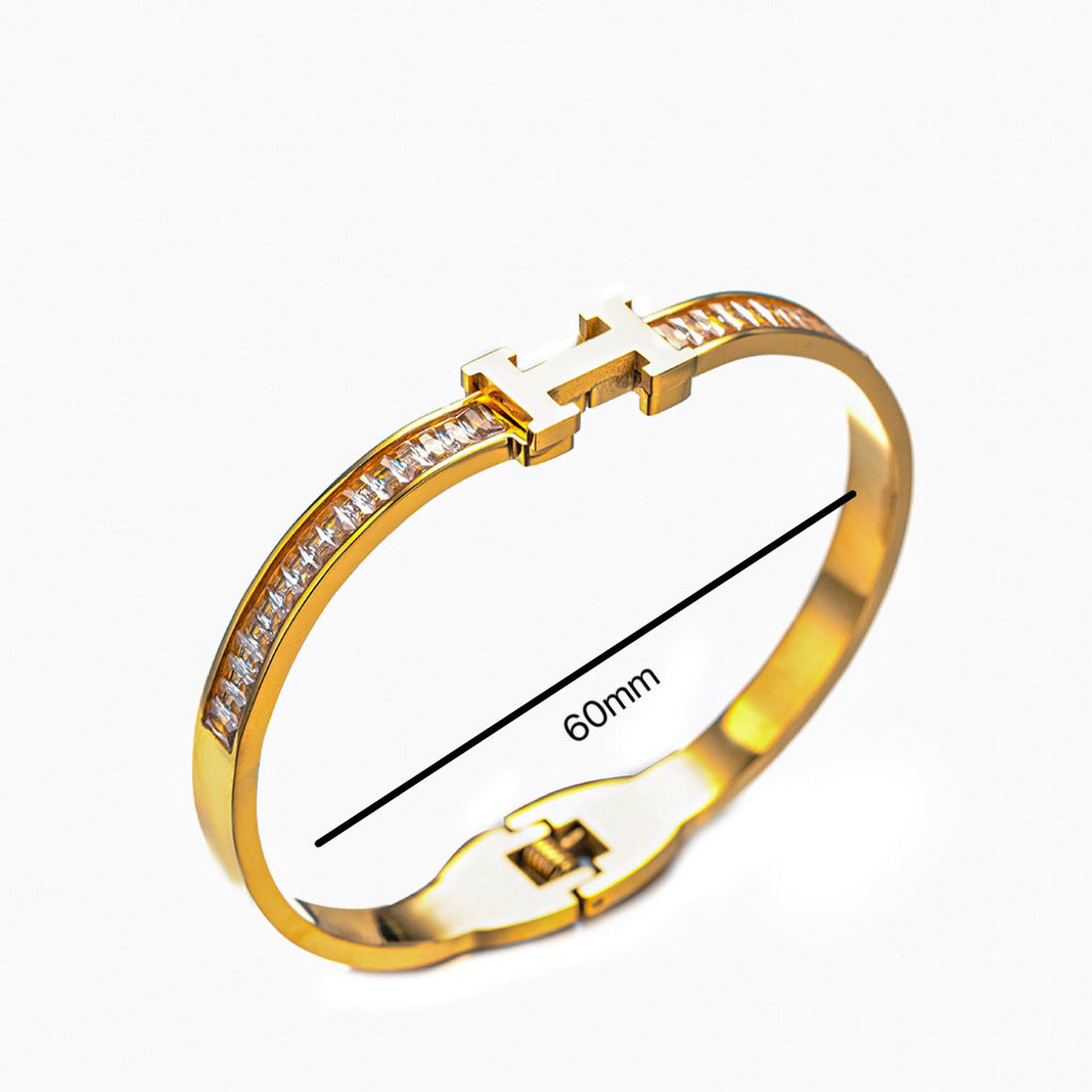 H Letter Diamond Titanium Steel Bracelet Popular Spring Bracelet 18K Gold Plated Stainless Steel Bracelet