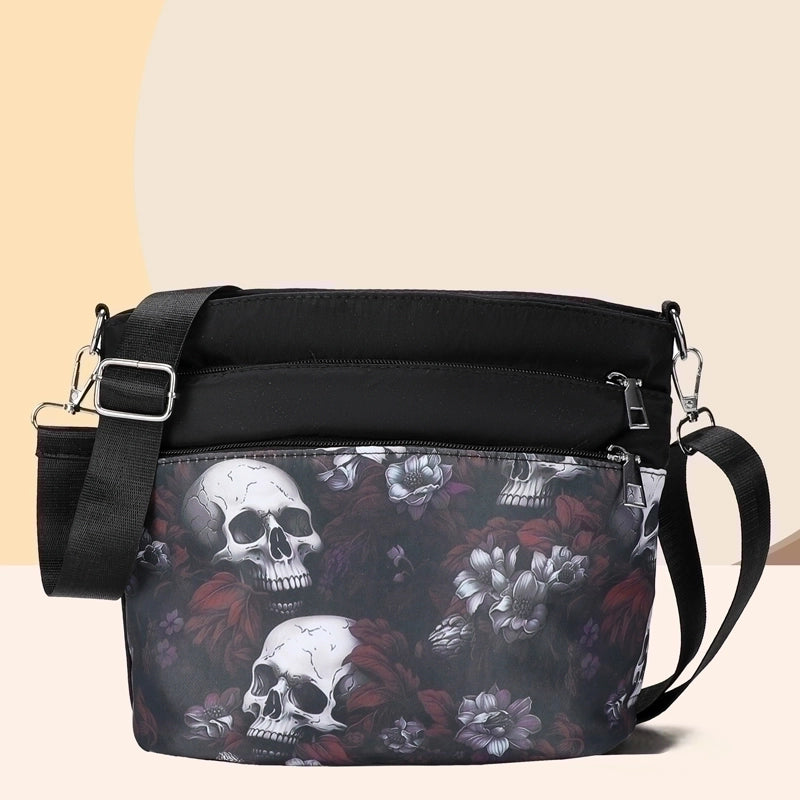 Be the first to review “Halloween Women’s Oxford Cloth Flower Ghost Punk Zipper Shoulder Bag” Cancel reply