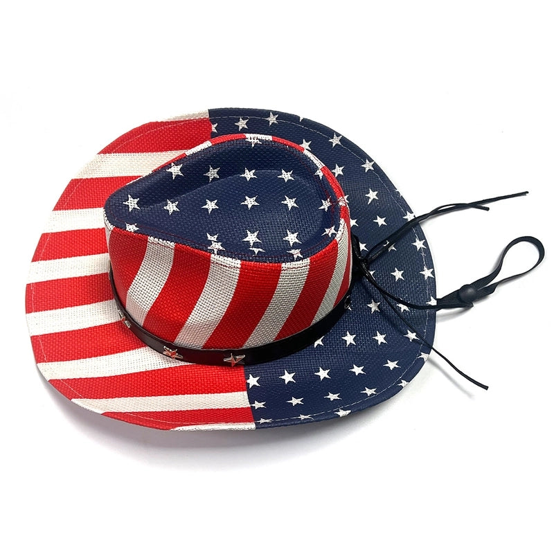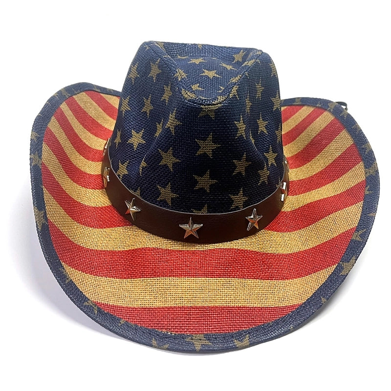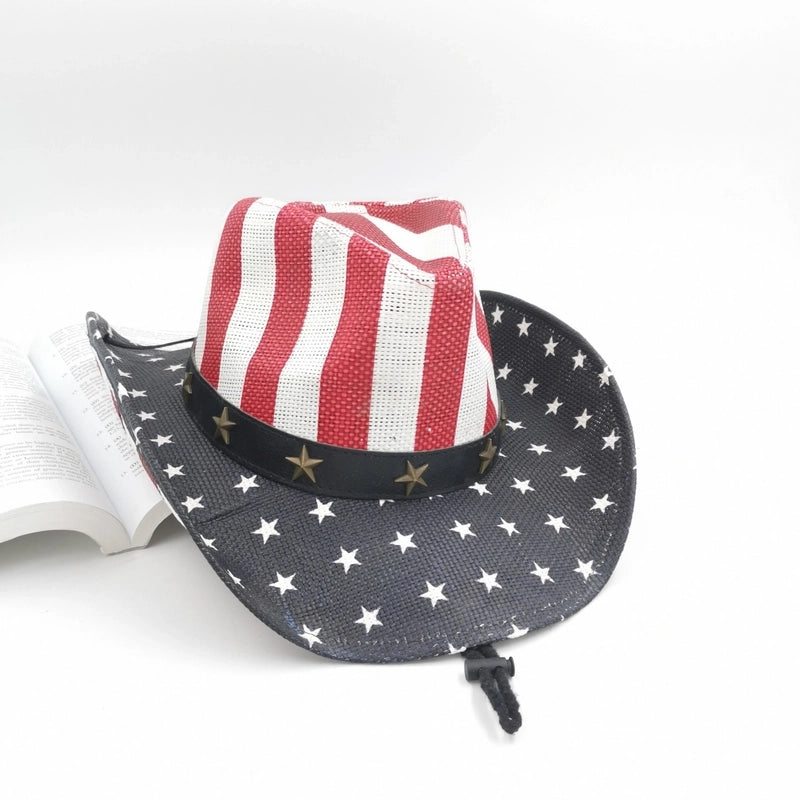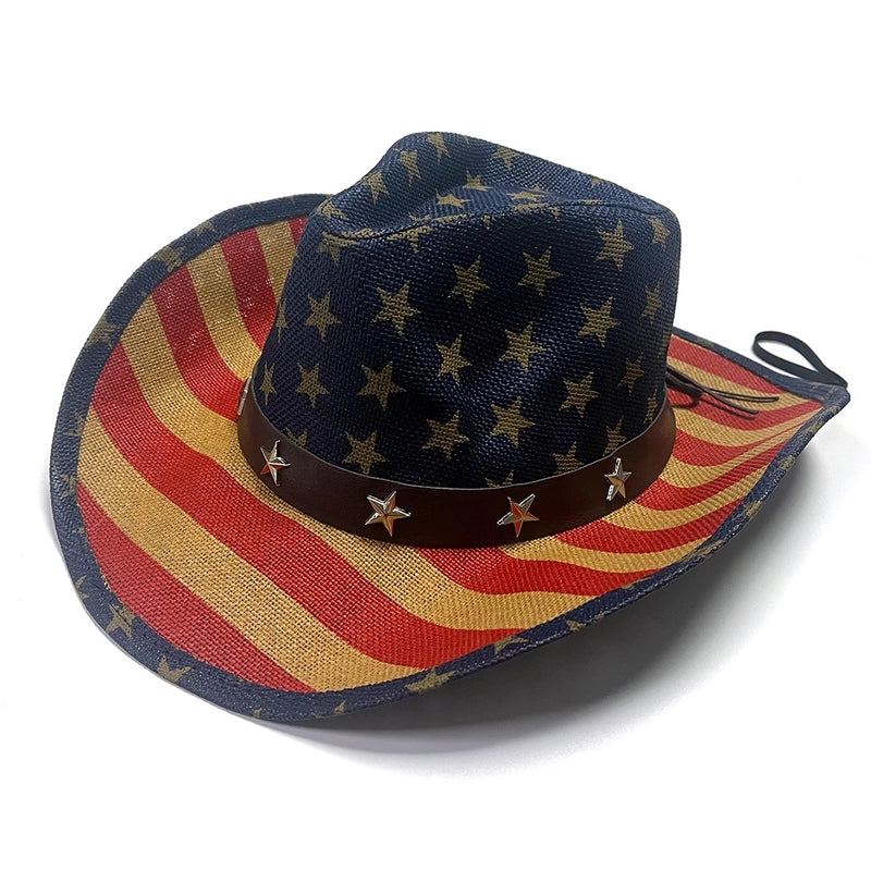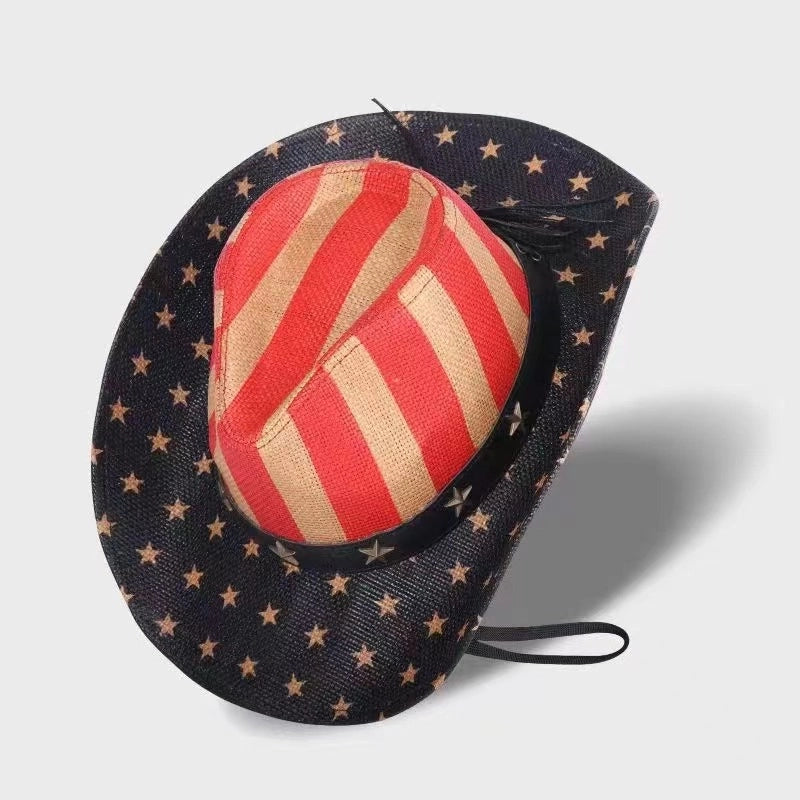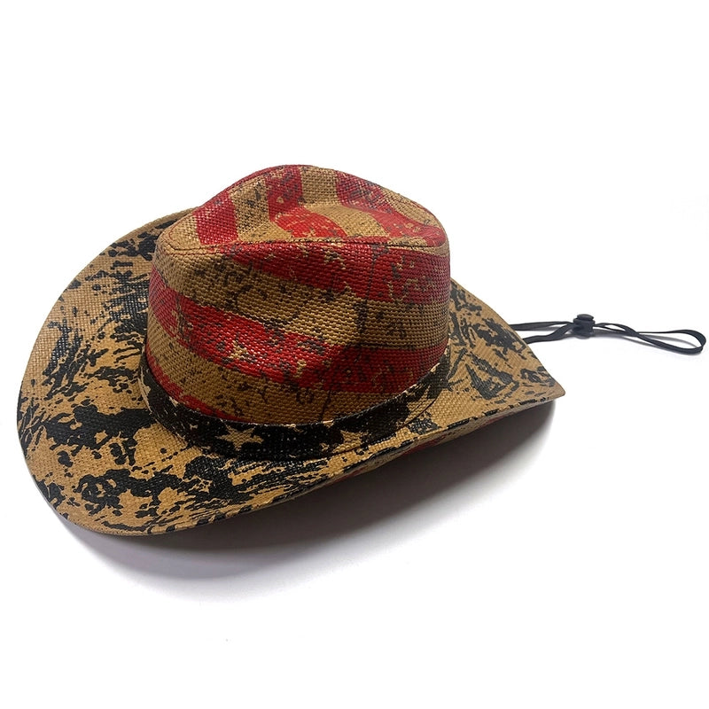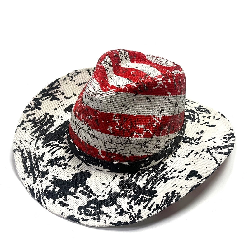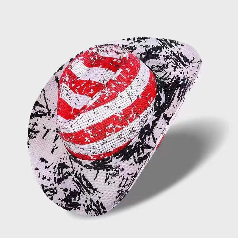 Hand Painted American Flag Series Western Cowboy Straw Hat
