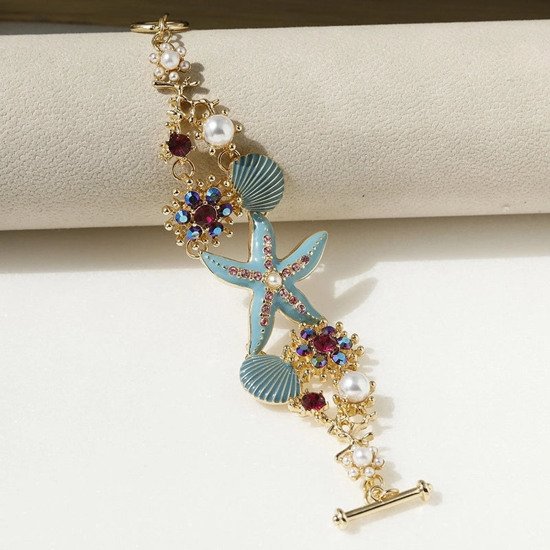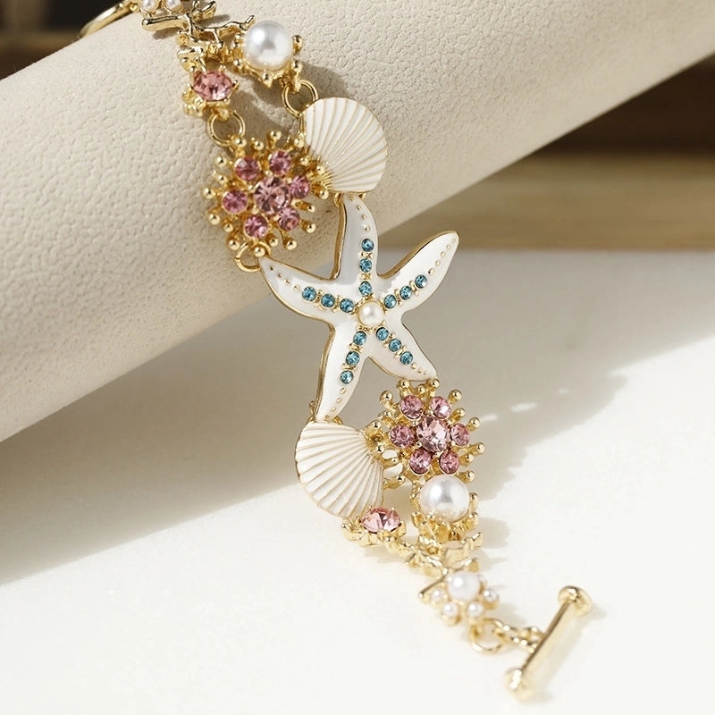 Hawaiian Vacation Marine Style Scallop Starfish Artificial Pearls Rhinestones Zinc Alloy Bracelets