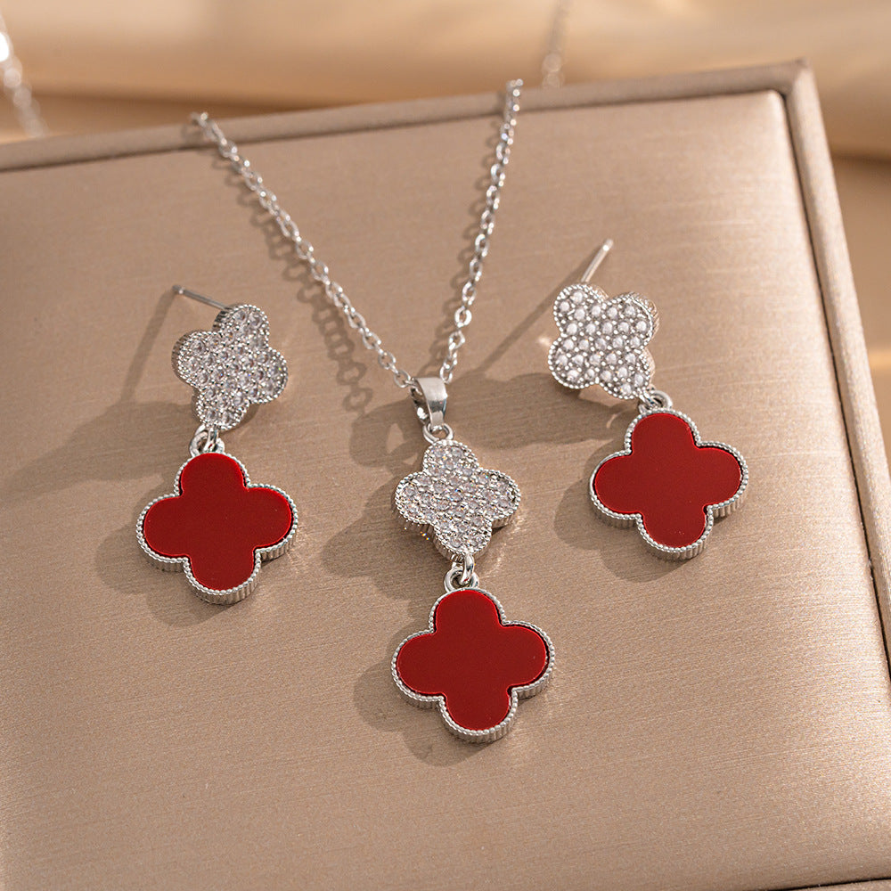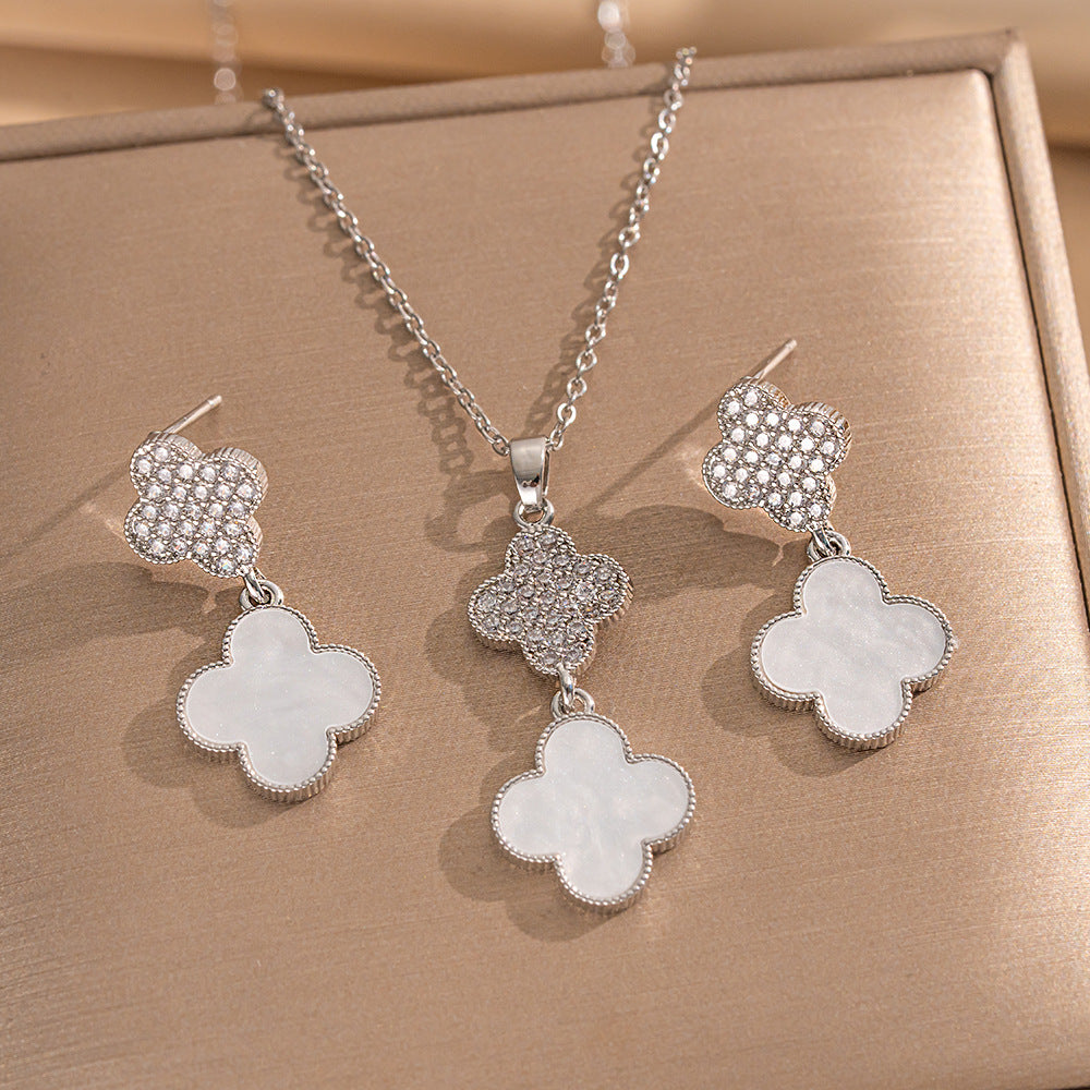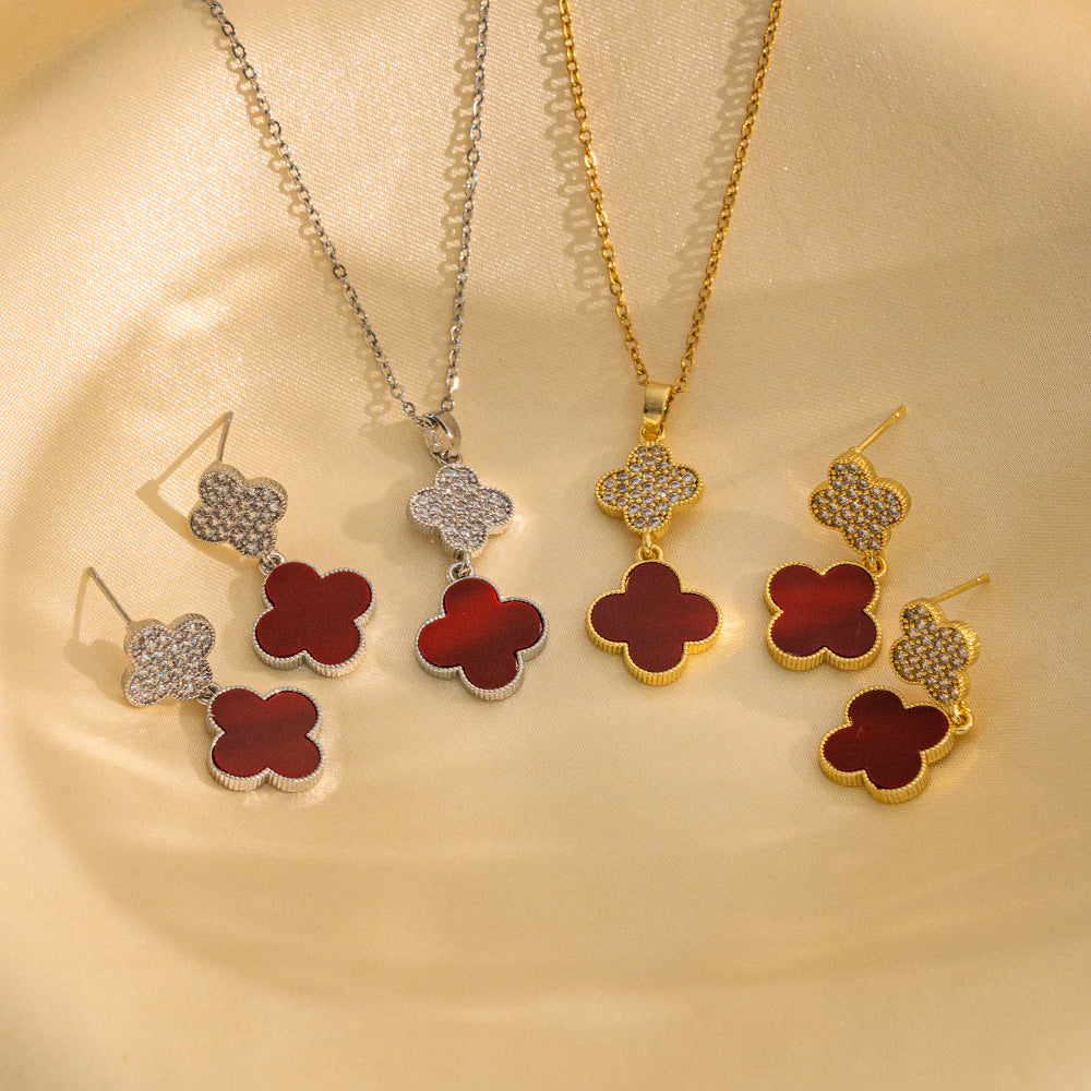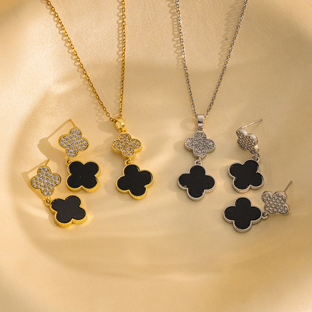 High-Quality Full Zirconium Heavy-Duty Real Gold Electroplated Copper Micro-Inlaid Earrings And Necklace Set Combination