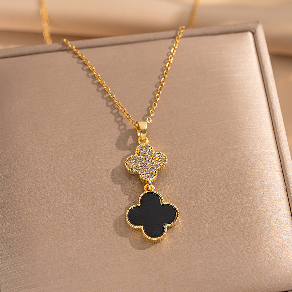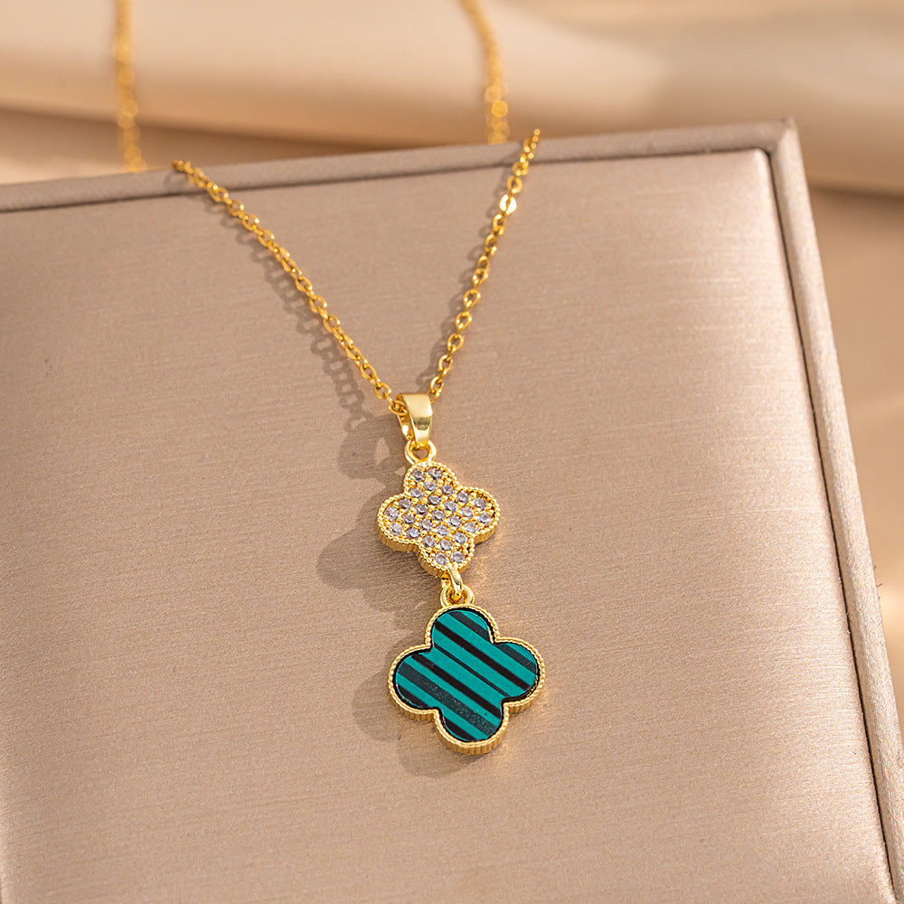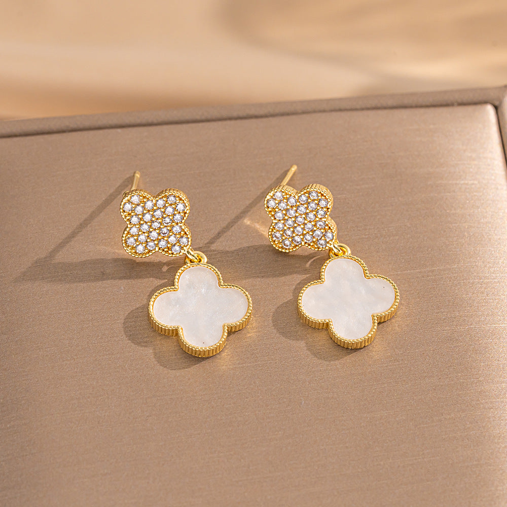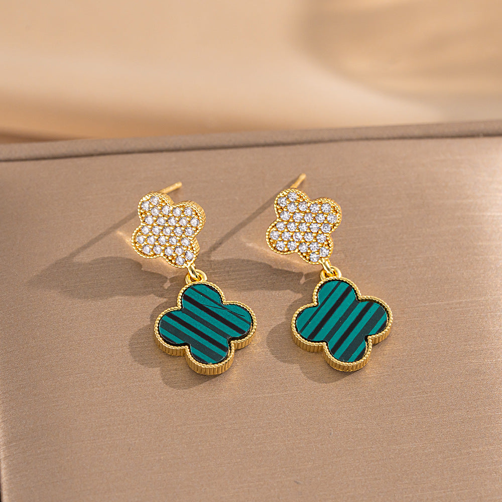 High-Quality Full Zirconium Heavy-Duty Real Gold Electroplated Copper Micro-Inlaid Earrings And Necklace Set Combination