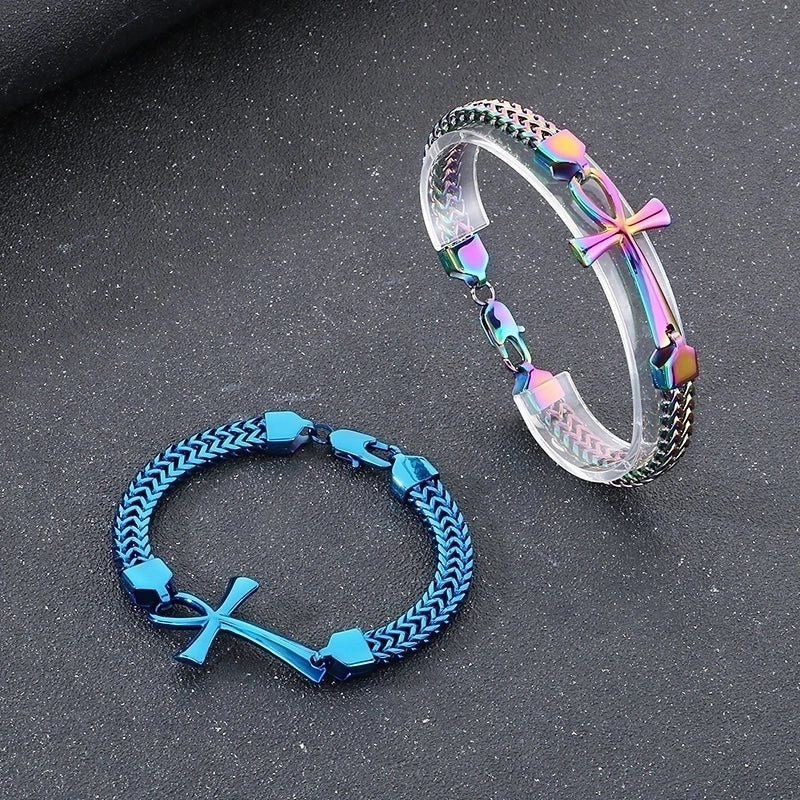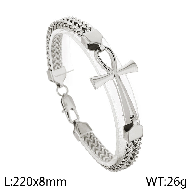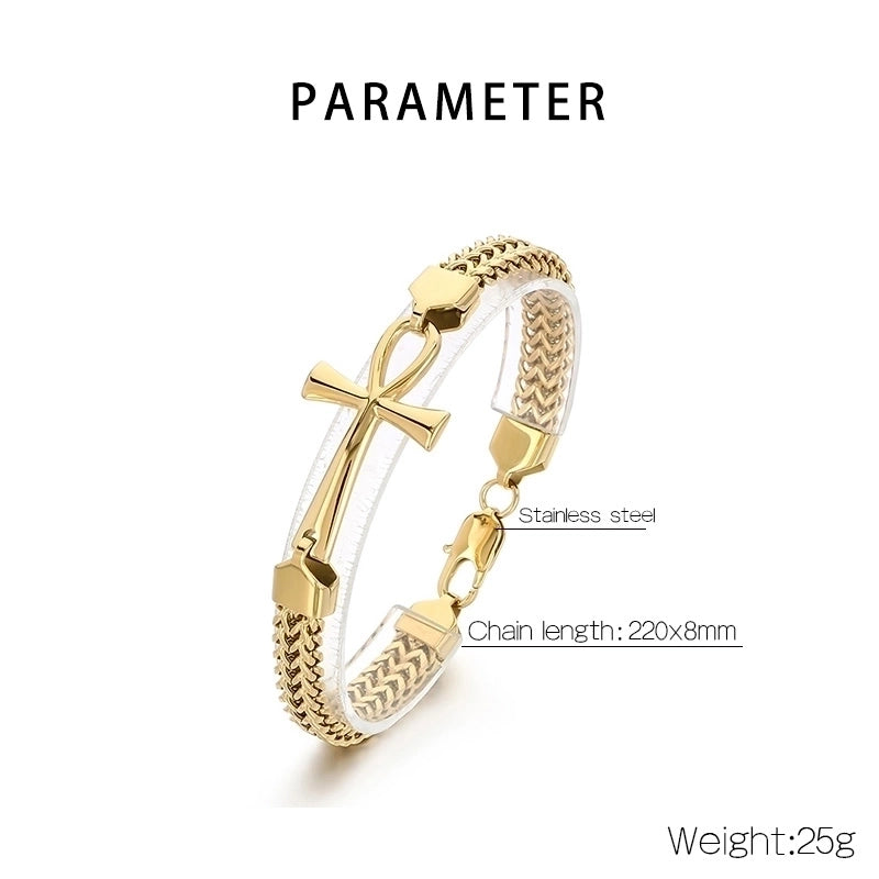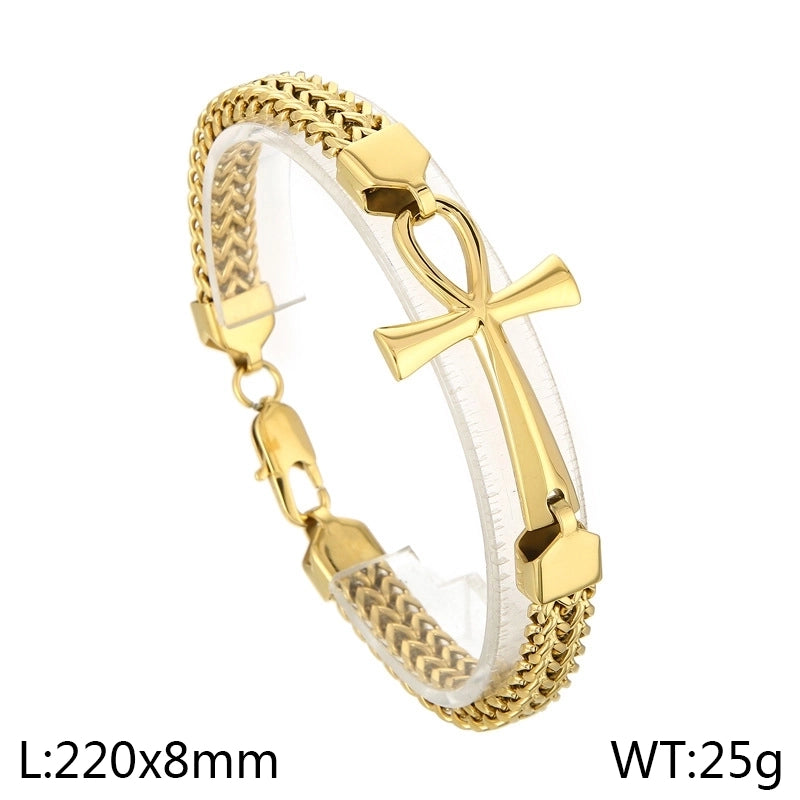 Hip-Hop Cross 304 Stainless Steel 18K Gold Plated Franco Chain Wheat Chain Spiga Chain Bracelets In Bulk