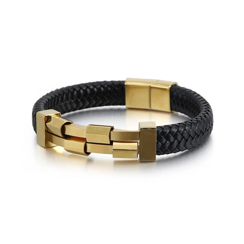 Be the first to review “Hip-Hop Retro Color Block Pu Leather Titanium Steel Asymmetrical Plating 18K Gold Plated Men’s Bangle” Cancel reply