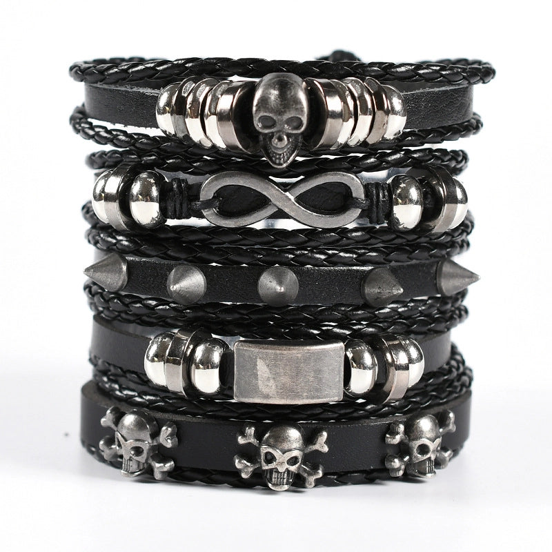 Hip-Hop Retro Punk Infinity Skull Pu Leather Alloy Wooden Beads Halloween Men’s Bracelets