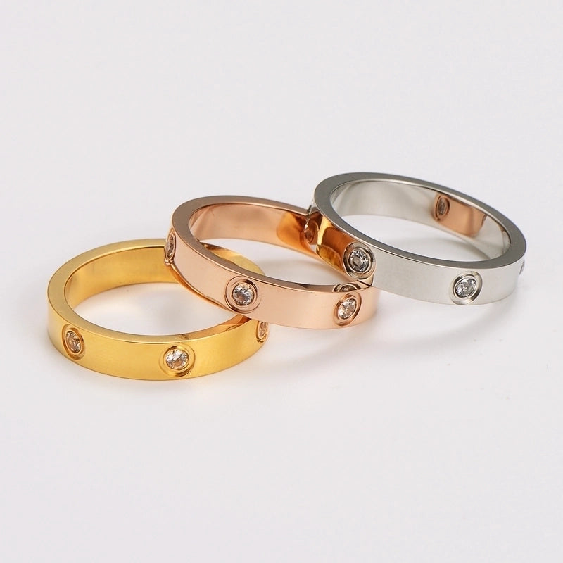 Hip-Hop Shiny Round 304 Stainless Steel 18K Gold Plated Rings