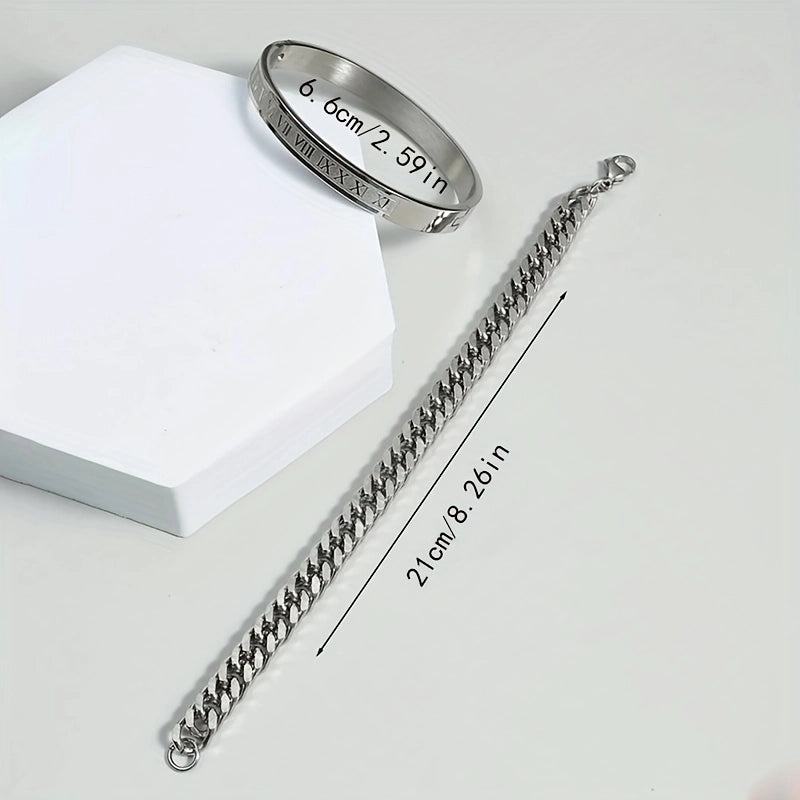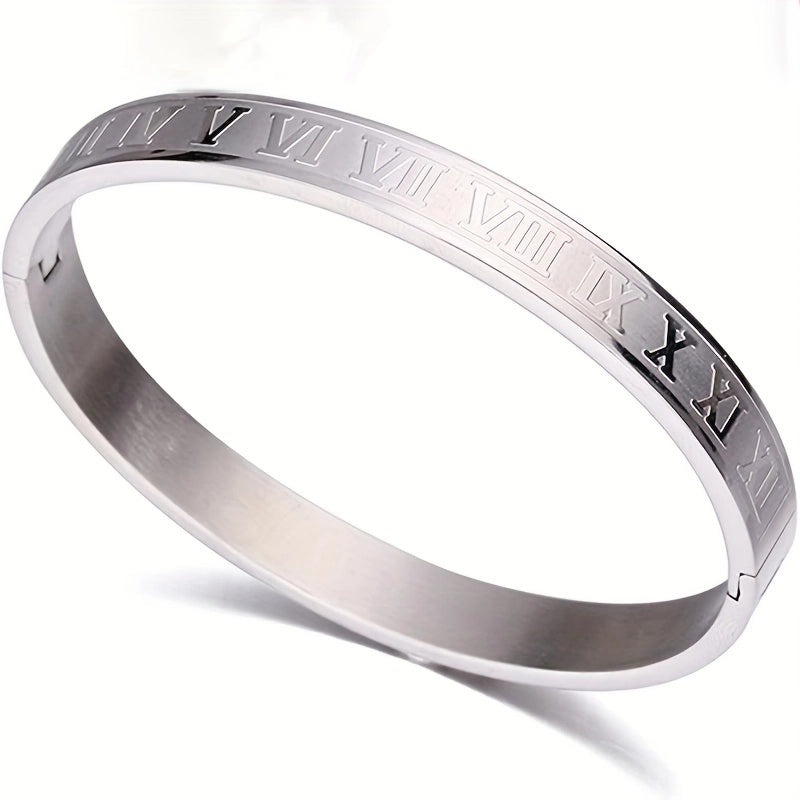 Hip-Hop Solid Color Roman Numeral Stainless Steel Unisex Bracelets Bangle